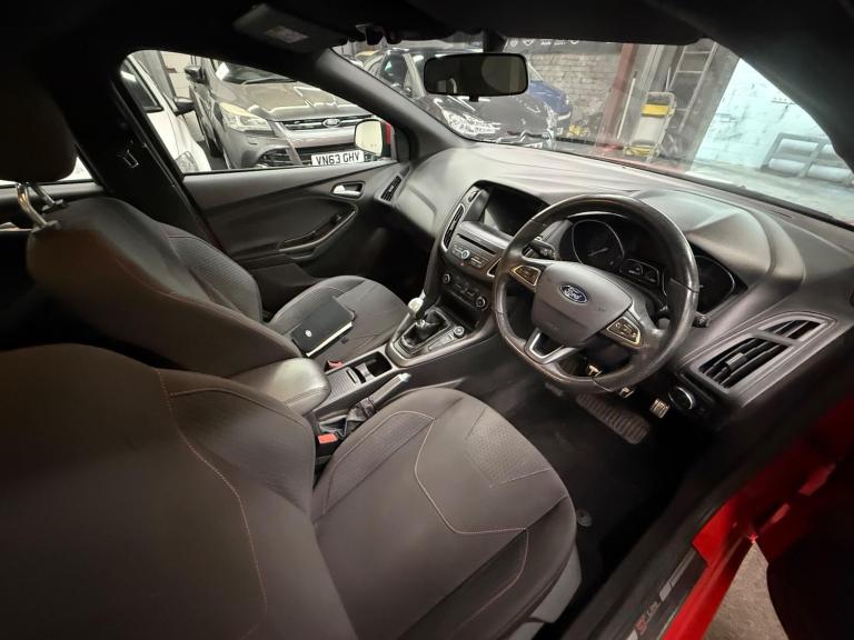 Discover this exceptional 2017 Ford Focus ST-Line, boasting an incredibly low mileage of just 52,000 miles, a rare find for a vehicle of its age. This well maintained example has had only two owners and comes with a clear vehicle history check, offering peace of mind. Under the bonnet, you'll find an efficient 1.0 litre petrol engine, compliant with Euro 6 emissions standards. Inside, the ST Line trim provides a sporty feel, complemented by the convenience of an 8 inch TFT touchscreen featuring Ford SYNC2, which includes Bluetooth connectivity for seamless phone integration.This Ford Focus ST Line stands out with its impressive fuel economy, achieving an excellent 60 miles per gallon, making it a cost effective choice for your daily journeys. Its low CO2 emissions further contribute to its economical and environmentally conscious profile, setting it apart from many other vehicles in its class. Practicality is also a key strength, with a generously sized boot offering ample space for shopping, luggage, or sports equipment, ensuring you have plenty of room for whatever life throws your way.