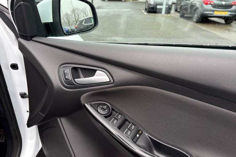 Available now from Motor Match Chester with a superb service history present, having been serviced at 11128, 16986, 24030, 27947, 32943 and 38274 miles. This excellent Ford Focus Titanium comes finished in the sleek Frozen White gloss paint, which looks fantastic paired with the 16in alloy wheels and rear privacy glass. At the front of the vehicle youll find the automatic headlights and rain-sensing wipers, offering superb visibility. The Focus also benefits from electrically adjustable and heated door mirrors. The interior offers plush cloth upholstery, with sports seats offering excellent support. Manual seat adjustment is provided, and Isofix mounting points can be found on the outer rear seats. The Focus is plenty spacious throughout, offering plenty of legroom for passengers, and a roomy boot too. Dual-zone climate control is also provided to keep all passengers comfortable. This Titanium model also boasts an amazing media system, providing access to DAB radio, Bluetooth interface and USB connectivity, so youve got plenty of choice when it comes to music. Youve also got the reliable satellite navigation system on board, along with ability to connect smartphones to use Apple CarPlay and Android Auto to access your phones apps and maps on the go! This car is equipped with cruise control and speed limiter which come in handy for motorway drives, while the rear parking sensors alert you to any obstructions when reversing! This vehicle is compliant with Clean Air...