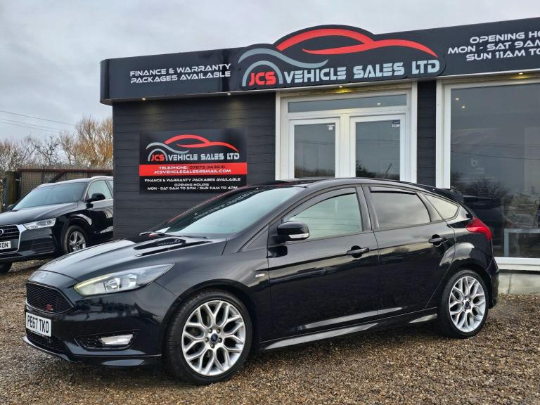 Finance available, 3 Months warranty, Open 7 days a week, Part exchange welcome, Nationwide delivery available, All debit and credit cards accepted, Just arrived, Stunning example, 67k Mileage from new with a full service history, 12 Months mot on sale, Engine and gearbox work effortlessly, Drives and performs superb, Excellent condition throughtout as photo'd, A very clean example, Everything works as it should, Any inspections welcome, 3 Months warranty included in the sale with the options to extend, Competitively priced across all platforms, Part exchange welcome at trade value, First to view will buy, This vehicle is fully Hpi clear Discover this 2017 Ford Focus T ST-Line, a stylish and practical hatchback that offers an impressive 60 miles per gallon. This Euro 6 compliant model is equipped with a 1.0 litre petrol engine and features desirable additions such as a rear view camera with parking assistance, Active City Stop for enhanced safety, and eye catching 18 inch Rock Metallic ST-Line alloy wheels. You'll also appreciate the privacy glass in the rear and manual air conditioning to keep you comfortable on every journey.This Ford Focus ST-Line stands out with its excellent fuel economy, achieving up to 60 mpg, which indicates it is more economical than many similar vehicles. Furthermore, its low CO2 emissions mean it is kinder to the environment. The generous boot space provides ample room for shopping, luggage, or sports equipment, making it a versatile choice for families and individuals alike.