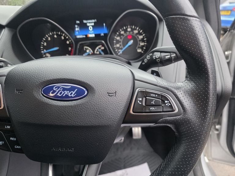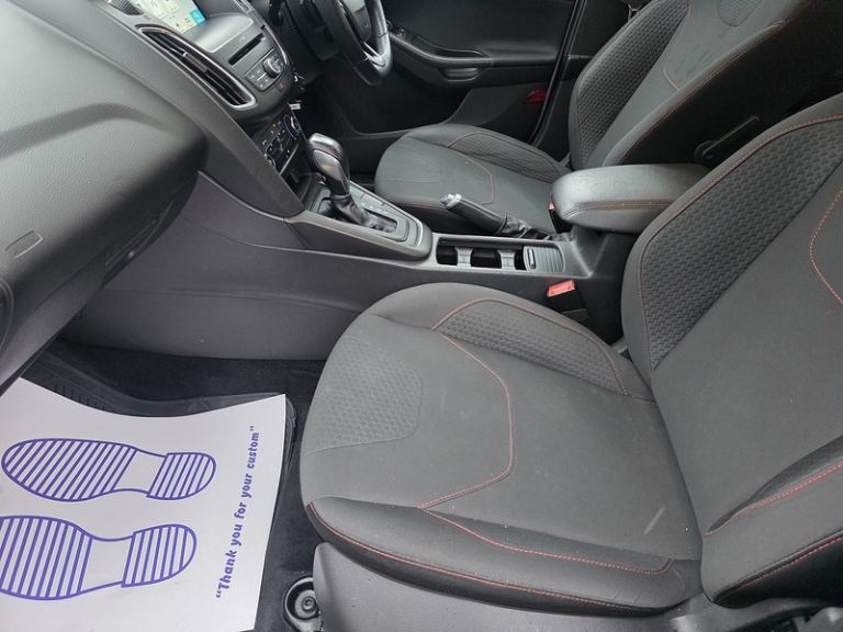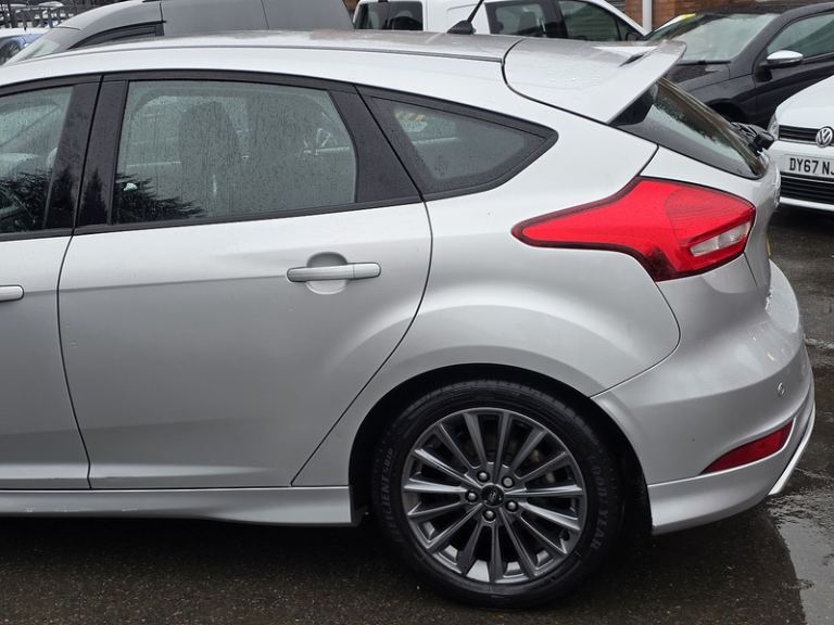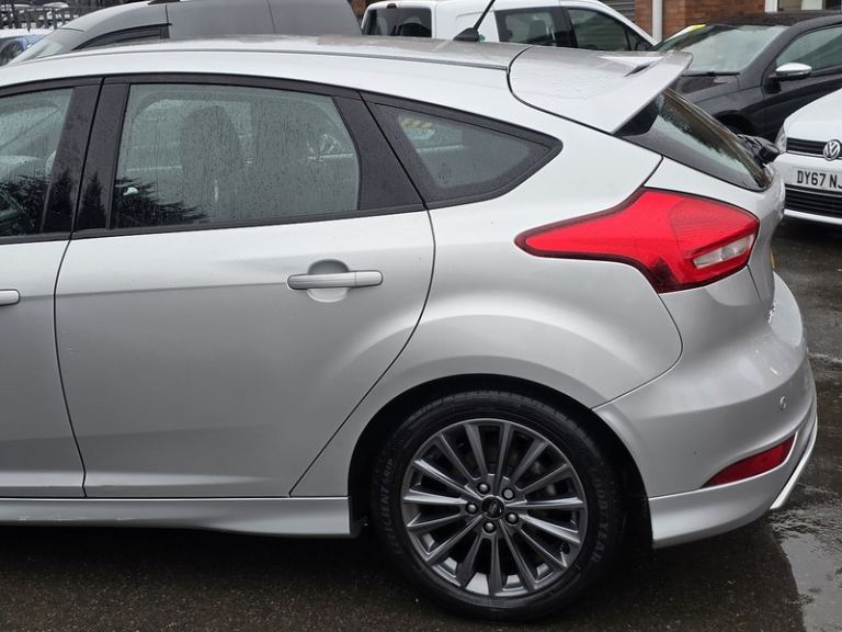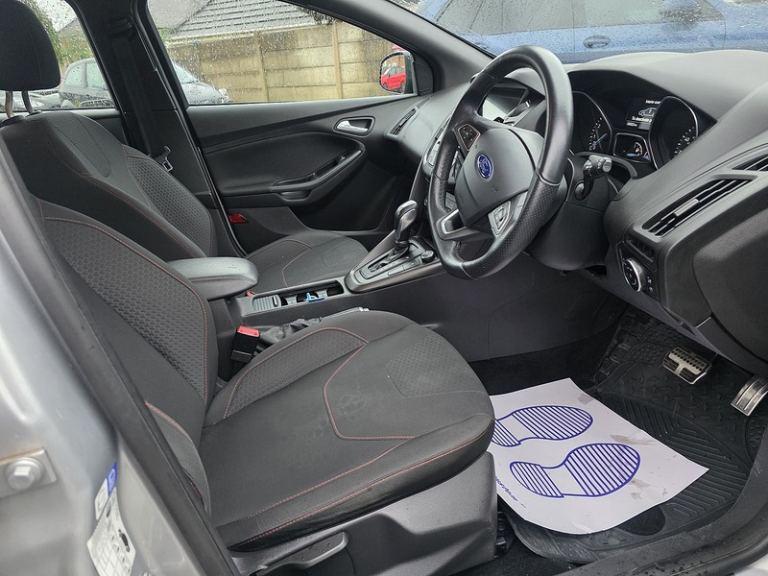 18in Alloy Wheels - ST-Line - Rock Metallic,Moondust Silver,Parking Distance Sensors - Rear,View Cloth - Charcoal Black with Red Stitching, Colour TFT Instrument Cluster Display, Ford SYNC3 DAB Navigation System, SYNC3 with 8in Touchscreen DAB Audio System, Cruise Control with Active Speed Limiter, Ford Eco Mode - Driver Information System, Trip Computer, Tyre Pressure Monitoring System, 17in Alloy Wheels - Rock Metallic Finish, Black Exterior Trim Detailing including Upper Door Line and Headlamp Surround, Body Colour Large Rear Spoiler and Side Skirts, Body Coloured Front Styling Kit with Centre Aero Foil, Door Mirrors - Heated - Electric - Integrated Side Indicators - Body Coloured, Locking Wheel Nuts, Quickclear Heated Front Windscreen with Heated Washer Jets, Rear Bumper with Integral Body Coloured Diffuser and Honeycomb Mesh in High-Gloss Black, Spare Wheel - Mini Steel, ST Line Stainless Steel Scuff Plates, Upper and Lower Grille - High Gloss Black Honeycomb Design, Windows - Electrically Operated Front with One Touch Lowering on Drivers Side, Wipers - Standard with 6 Speed Interval Settings, Front Fog Lights, Halogen Headlights with Black Surround, Headlights - Courtesy Delay, LED Daytime Running Lights, Rear Lights - LED, Air Conditioning - Manual, Centre Console - Premium with Sliding Armrest - Covered Stowage Bins, Courtesy Light - Front and Rear Passengers - Overhead Halogen and Load Compartment, Drivers Seat Lumbar Adjust, Ford Power Starter Button, Front Floor Mats, Front Seat - Drivers Manual Height and Fore-Aft Adjustment, Front Seat - Passenger Manual Fore-Aft Adjustment, Front Seats - Sports Style, Gearshift Knob - Leather, Headliner - Black Woven, Keyless Start, Leather-Trimmed Handbrake, MyKey, Paddle Shift, Sports Style Pedals - Gear Knob and Steering Wheel, Steering Column - Rake and Reach Adjustment, Steering Wheel - 3-spoke Flat Bottom - Leather Trimmed, EPAS - Electric Power Assisted Steering, Front Suspension - Independent with MacPherson Struts and Anti-Roll Bar, Rear Suspension - Independent Control Blade Multi-Link System and Anti-Roll Bar, Suspension - Sports, Airbags - Driver and Front Passenger, Airbags - Front and Rear Side Curtain, Airbags - Front Side Impact, Alarm - Thatcham Category 1 with Volume Sensing and Perimeter, Anti-Lock Braking System - ABS with Electronic Brake Force Distribution - EBD, Electronic Stability Programme - ESP - with Traction Control and Emergency Brake Assist - EBA, Emergency Brake Warning - Automatic Hazard Warning Lights, Ford Easy-Fuel Capless Refuelling System, Hill Start Assist, IPS - Intelligent Protection System, Remote Central-Double Locking, Seats - ISOFIX Mounting Provision for Child Seats, TVC - Torque Vectoring Control.Here we have a Ford Focus ST-Line 1.0 Petrol Automatic finished in Moondust Silver having done only 58K miles from new with Full service history including the last service completed less than 50 miles ago. Comes with a long MOT until January 2027 with no advisories.Comes with 12 month AA breakdown cover and a full 3 month warranty on entire vehicle. Comes with a complete set of 2 Remote Keys.The interior and exterior of the car have been looked after very well, it starts and drives perfectly with no issues at all. Being the top of the range spec benefitting from: Rear Parking Sensors, Apple Car Play, FordPass Connect, Navigation In car Wi-Fi, Bluetooth phone connectivity, Cruise Control, USB-C and aux capability too. Fully HPI clear. The car will be sold with extendable Warranty. We also offer Part Exchange / Delivery / Finance / HPI report available on request. Please call us on [Phone number removed] for further enquiries.=============================================================================== Why not read our AutoTrader reviews to see what our customers think about their experience here and why they choose to buy from us, =============================================================================== Please contact our sales department for the latest finance offers on this vehicle. We have a dedicated team researching our used car prices daily to make sure we offer the best value cars in the market, =============================================================================== To arrange a personal viewing of this amazing car, or if you would like a tailored video to be emailed to you then please contact us. ===============================================================================Please give us a call for directions. Our postcode for Sat Nav direction is B25 8EL • Finance subject to status, T&C's apply. , -