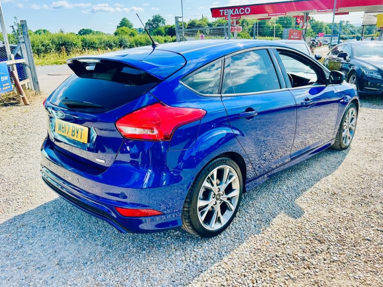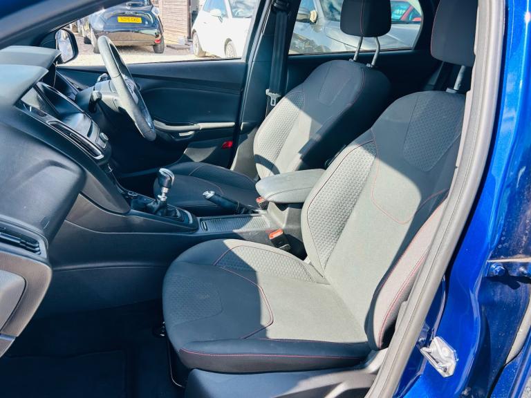 2017 Ford Focus 1.0 ST LINE - Very low mileage at just 22k with full service history - Mot March 2026 - Ulez compliant Euro 6 - Low tax - Finance Available - Part Exchange Welcome - Extended Warranties Available Features Include: , 17in alloy wheels - rock metallic finish, black exterior trim detailing including upper door line and headlamp surround, body colour large rear spoiler and side skirts, body coloured front styling kit with centre aero foil, door mirrors - heated - electric - integrated side indicators - body coloured, locking wheel nuts, quickclear heated front windscreen with heated washer jets, rear bumper with integral body coloured diffuser and honeycomb mesh in high-gloss black, st line stainless steel scuff plates, spare wheel - mini steel, upper and lower grille - high gloss black honeycomb design, windows - electrically operated front with one touch lowering on drivers side, wipers - standard with 6 speed interval settings, air conditioning - manual, courtesy light - front and rear passengers - overhead halogen and load compartment, drivers seat lumbar adjust, front floor mats, front seat - drivers manual height and fore-aft adjustment, front seat - passenger manual fore-aft adjustment, front seats - sports style, gearshift knob - leather, headliner - black woven, interior door lever - chrome finish, keyless start, leather-trimmed handbrake, mykey, premium centre console - sliding armrest, rear seat - 60-40 split back and cushion, sports style pedals - gear knob and steering wheel, steering column - rake and reach adjustment, steering wheel - 3 spoke - leather trimmed, alarm - thatcham category 1 with volume sensing and perimeter, electronic stability programme - esp - with traction control and emergency brake assist - eba, ford easy-fuel capless refuelling system, ips - intelligent protection system, remote central-double locking, tvc - torque vectoring control, colour tft instrument cluster display, ford sync3 dab navigation system, sync3 with 8in touchscreen dab audio system, epas - electric power assisted steering, ford eco mode - driver information system, front suspension - independent with macpherson struts and anti-roll bar, rear suspension - independent control blade multi-link system and anti-roll bar, suspension - sports, trip computer, tyre pressure monitoring system, front fog lights, halogen headlights with black surround, led daytime running lights, rear lights - led