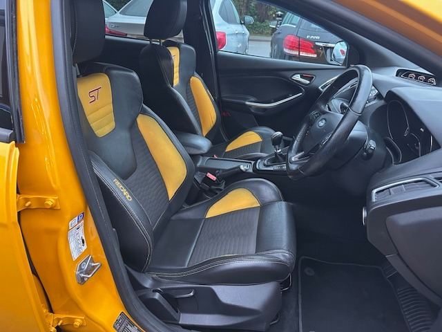 This stunning 2017 67-Reg Ford Focus ST-2 2.0 TDCI Must be seen!!! having covered just 88,000 miles from new with loads of service history it looks and drives superb!!! Presented in Special Order Tangerine Scream Pearlescent with Charcoal Black leather seat facing with Electric Gold bolsters extras include Rare factory satellite navigation and Bluetooth phone prep, Reverse Camera, digital climate control, half leather Recaro sports seats, Heated Steering Wheel, Anthracite alloy wheels, keyless go, privacy glass, factory Bluetooth phone prep, Reverse parking sensors, heated front screen, auto lights and wipers, Cruise control with lane departure, USB/Media interface and full ST styling and alloy wheels, Door Edge Protectors, completely original and unmolested and one of the best you will find anywhere!!! Superb condition and being 2017 is fully ULEZ Compliant!!
