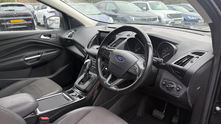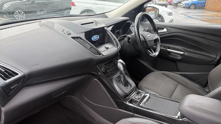 Features Include Appearance Pack , Rear View Camera, QuickClear Heated WindScreen, Dual Zone Climate And Automatic Lights And Wipers. Smart, spacious, and powerful, this 2017 Ford Kuga Titanium 1.5 EcoBoost Automatic in sleek Shadow Black is a versatile family SUV that delivers strong performance alongside everyday comfort and practicality. With its higher driving position, smooth automatic gearbox, and generous equipment level, the Kuga is perfectly suited to both city use and longer journeys. Under the bonnet, the 182bhp 1.5-litre EcoBoost petrol engine provides lively acceleration and confident motorway cruising, while the automatic transmission ensures a relaxed and effortless driving experience. The Kuga's well-balanced handling and refined ride make it an enjoyable SUV to drive in all conditions. Inside, the Titanium specification offers a well-appointed cabin featuring touchscreen infotainment, Bluetooth connectivity, DAB radio, cruise control, and dual-zone climate control. The spacious interior provides excellent comfort for passengers, while the 5-door layout and large boot make it ideal for family life, work, or weekend adventures.