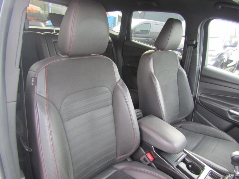 ..Enhanced active park assist including perpendicular parking pull out assist and flank guard, EPAS, Front parking sensor, Rear parking sensor, SYNC Emergency Assistance, Trip computer, Sports suspension, Auxiliary socket for external device, Remote audio controls on steering wheel, USB connection, Auto dimming rear view mirror, Automatic headlights, Black roof rails, Body colour bumpers, Body styling kit, Electric folding mirrors, Electrically heated door mirrors, Front scuff plate, LED daytime running lights, Power front and rear windows, Quickclear heated windscreen, Rain sensor windscreen wipers, Rear diffuser, Tailgate wash/wipe, Twin exhaust pipes, 60/40 split/folding rear back and cushion, Alloy Foot Pedals, Auxiliary power socket in luggage area, Centre console with stowage tray/bottle holder/CD stowage/front and rear 12V power point, Dark headlining, Dinamica/Leather Upholstery, Driver seat lumbar adjustment, Driver/passenger front seatback pockets, Driver/passenger seats fore/aft adjustment, Dual electronic automatic temperature control, Floor mats with red stitching, Folding rear centre armrest, Footwell courtesy lights front and rear, Front head restraints, Front overhead courtesy lights with theatre style dimming and delay, Front/rear reading lights, Isofix system on outer rear seats, Leather gearknob, Leather steering wheel with red stitching, Memory for drivers seat/door mirrors, Passenger lumbar support, Reach + rake adjustable steering column, Rear floor mats, Rear head restraints, Sports style front seats, Stowage unit in upper instrument panel, Tie down hooks, Tonneau cover, Variable intensity instrument illumination, 3 point seatbelts on all 3 rear seats, ABS/EBD, Driver and passenger airbags, Driver and passenger side airbags, Electric traction assist system, Electronic parking brake, ESP+EBA, Front and rear curtain airbags, Hill start assist, Intelligent Protection System (IPS), Tyre pressure monitoring system, Immobiliser, Keyless start, Locking wheel nuts, Remote central locking, Thatcham Cat.1 alarm, Mini steel spare wheel