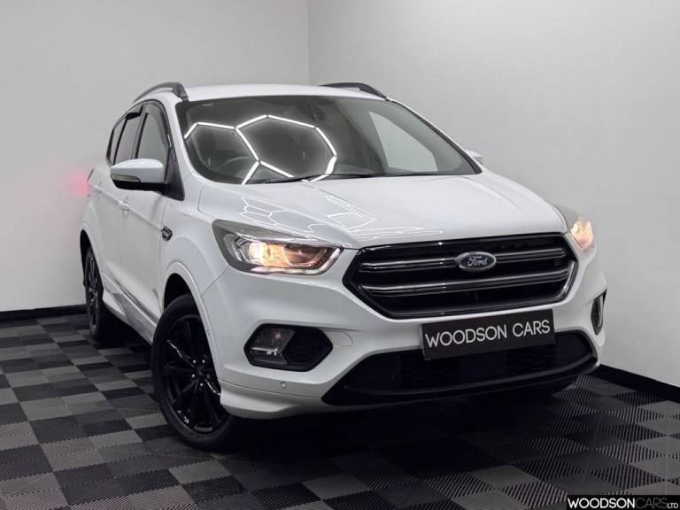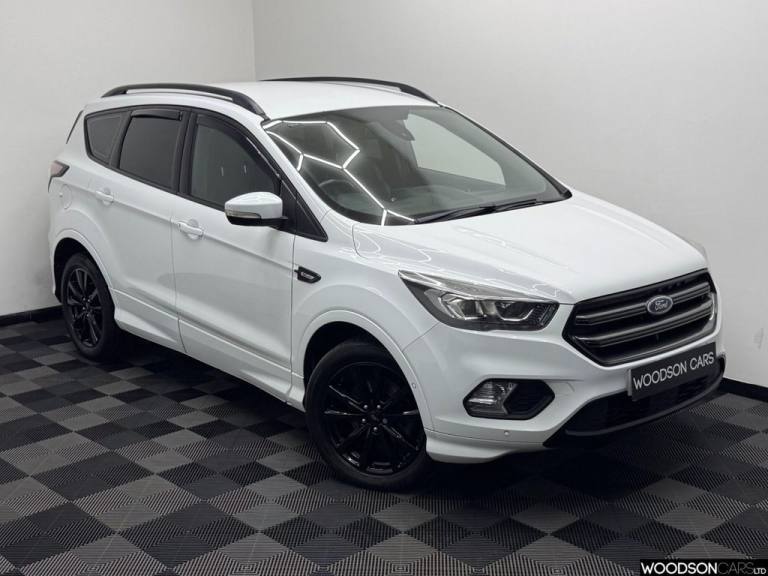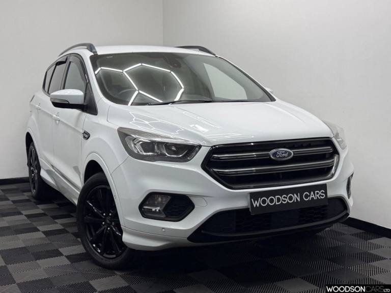 Finance Soft Search Pre Approval. This Ford Kuga 1.5 TDCi ST-Line Diesel Manual Euro 6 (120bhp) has covered 59000 miles in white with black half leather interior. This vehicle has got service records at 14k, 27k, 48k, 58k. Sat nav, apple car play, DAB Radio, bluetooth, isofix, parking sensors, auto lights, privacy glass, black alloy wheels + much more. *PART EXCHANGED WITH US* Warranty Included (upgrades are available). Any inspection/test drive always welcome. More than 40 photos are available + Video Walk Around available upon Request. Credit/Debit card payment welcome + Approved finance partner with consumer credit licence held + Part exchange welcome + Private plate transfers, delivery service all available on request + Call 7 days a week to discuss and book an appointment [Website URL removed]. We offer finance from 9.9% APR Indicative with soft search facility too. Every effort has been made to ensure the accuracy of the above information but errors may occur. Please check with a salesperson if any specification is in your decision making before proceeding..Sat Nav, DAB Radio, Bluetooth, Apple Car Play, Isofix, Frozen White, Extended Warranty 5 Years - 100000 Miles, ST-Line Style Pack, Rear Privacy Glass, 12V Power Socket - Load Compartment, 18in Alloy Wheels - 5x2 Spoke - Dark Machined, 6-Way Manual Passenger Seat with Lumbar Adjustment, Airbags - Driver and Front Passenger, Airbags - Drivers Knee, Airbags - Front Side Impact, Airbags - Front and Rear Side Curtain, Alloy Pedals, Anti-Lock Braking System - ABS with Electronic Stability Control - ESC, Armrest - Folding Centre - Rear, Audible Text Messaging - Voice Control and USB Connectivity, Automatic Dimming Rear View Mirror, Automatic Halogen Headlights with LED Daytime Running Lights, Black Roof Rails, Centre Console, Child Locks - Manual on Rear Doors, Courtesy Lights - Front and Rear, Cruise Control with Active Speed Limiter, DEATC - Dual-Zone Electronic Automatic Temperature Control, Dark Headliner, Door Lever - Chrome Finish, EBA - Emergency Brake Assist, EPAS - Electric Power Assisted Steering, ESP - Electronic Stability Programme, Electric Parking Brake, Electric Windows - Front and Rear with Global Opening-Closing and One Touch, Engine Immobiliser, Enhanced Active Park Assist, Fog Lights - Front, Ford DAB Navigation System with Ford SYNC3, Ford SYNC with Emergency Assistance, Front Seat - Drivers Manual Height - Fore-Aft and Recline Adjustment, Front Seat - Passenger Manual - Fore-Aft and Recline Adjustment, Front Seats - Seat-Back Map Pockets, Full Body Styling Kit, Hill Start Assist, IPS - Intelligent Protection System, Keyless Start, Leather Steering Wheel and Gear Knob, Loadspace Floor Carpet, Locking Wheel Nuts, Mini Spare Wheel, MyKey, Power Folding Door Mirrors with Puddle Lights, Quickclear Heated Front Windscreen with Heated Washer Jets, Rain Sensitive Windshield Wipers, Rear Seat - 60-40 Split Folding Seat Back and Cushion with Multi-Step Recline Function, Rear Seats - 2-Way Head Restraint Up-Down, ST-Line Floor Mats with Contrast Stitching, ST-Line Seats - Gear Knob and Steering Wheel, SYNC3 with 8in Touchscreen DAB Audio System, Scuff Plates - Front, Seat Belts - 3-Point Diagonal Inertia Reel - All Seats, Seat Belts - Rear Belt Minder Alert, Seatbelts - Manual Height Adjustment, Seats - Drivers with Manual Lumbar Support Adjustment, Seats - ISOFIX Mounting Provision for Child Seats - Outer Seats Only, Seats - Passenger Height Adjustment, Seats - Passenger Lumbar Support, Sports Suspension, Steering Column - Rake and Reach Adjustment, Th