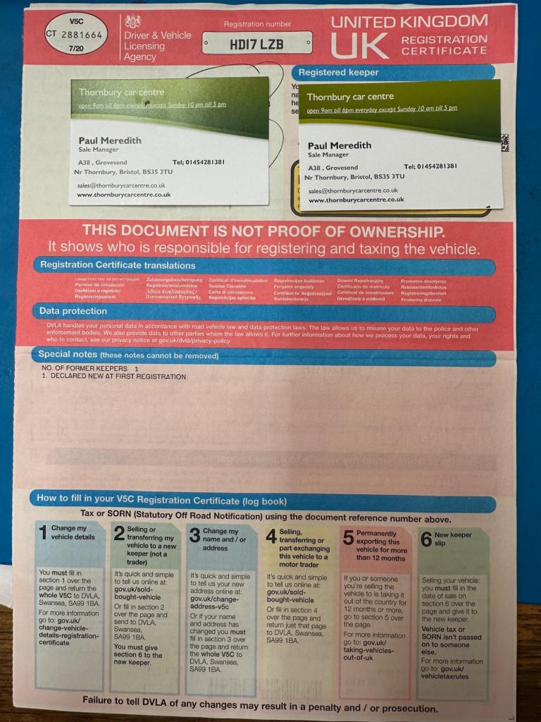 - Original number plateAdvisoryDifferent number plates are commonplace. Ensure the number plates on the car match the V5C documentation. Be sure of what number plate comes with the car you are buying.