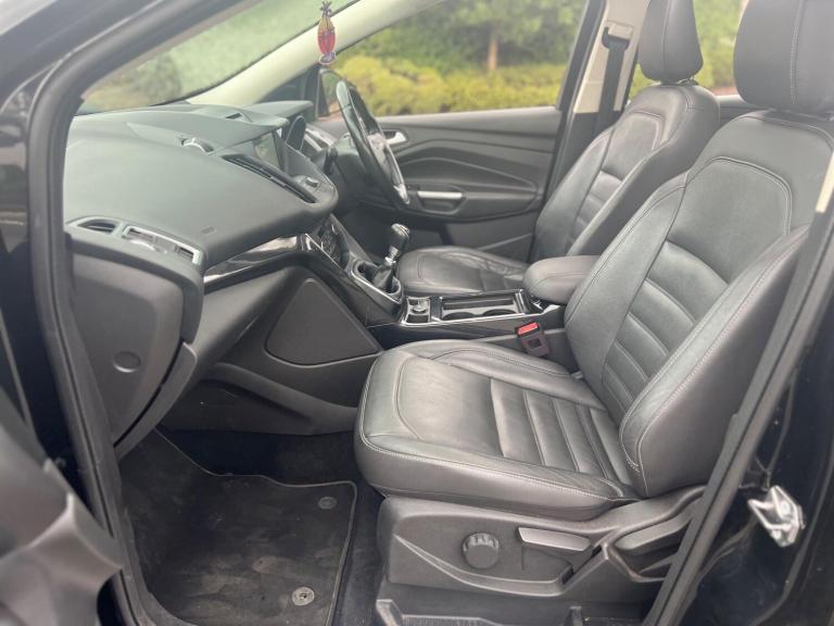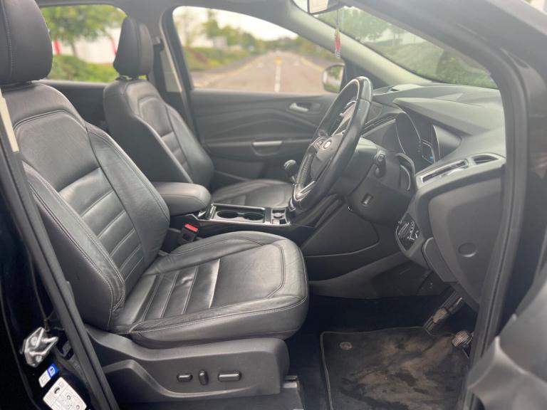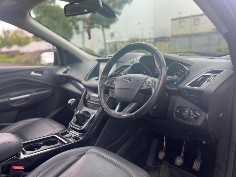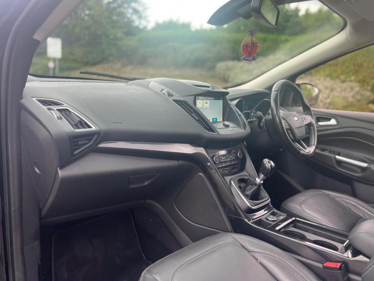 2017 Ford Kuga Titanium X 1.5 TDCI finished in black. 91,000 warranted miles on the clock. MOT til 25th July 2026. 3 former keepers from new. Car drives well with no mechanical faults. Comes with a fresh Service. Full V5 available. Comes with a top spec including; alloy wheels, leather steering wheel, multi-functional steering wheel, cruise control, on-board computer, Satellite Navigation, black leather seats, heated seats, Radio DAB/FM, electric windows, central locking, AC/Climate control, Bluetooth, Apple CarPlay, tilt & slide sunroof, automatic headlights, TPMS, cup holders and many more. Nationwide Delivery Available. P/X Welcome. HPI Clear. ULEZ Compliant. 2 Keys. Any questions don't hesitate to contact us on [Phone number removed]
