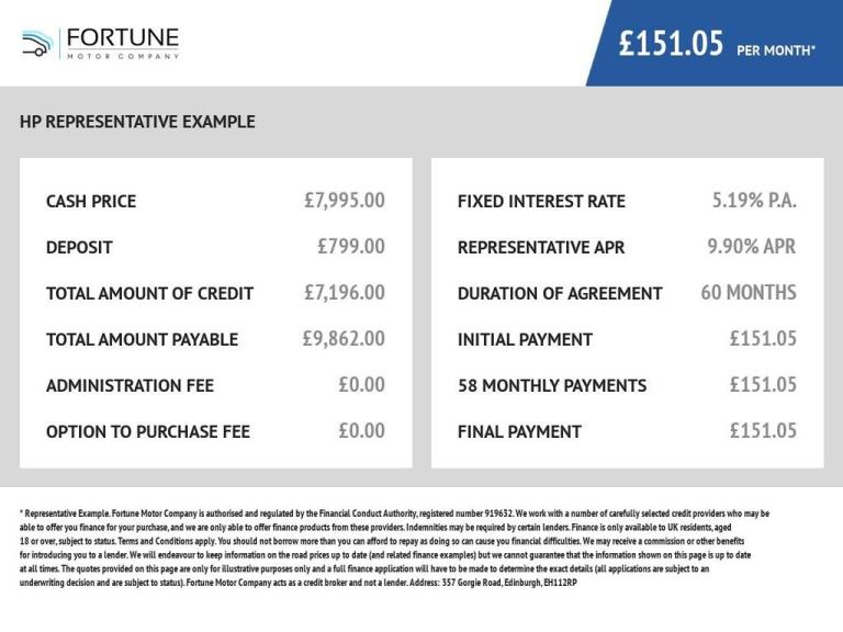 Fortune Motor Company is a AA accredited family-run used car dealership in Edinburgh, with over 70 years of experience in the motor trade. They specialize in low-mileage, well-maintained cars and offer a high standard of preparation, including a minimum of 6 months MOT and 6 months warranty included free of charge. The company is run by Jack Fortune, the fourth generation of his family in the motor trade. They also offer finance packages that suit all budgets and have a dedicated team to assist with car valuations and sales.