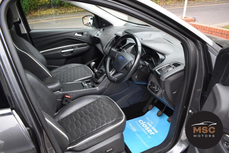 This Kuga is in lovely condition for its age and mileage and it’s also a brilliant specification. It has got front and rear parking sensors to help getting into those tight supermarket spaces and once you are parked you needn’t worry about people catching your wing mirrors as they will fold in electronically. You’re never going to lose your perfect seating position with it having the memory function on the drivers seat and you needn’t worry about forgetting to turn your headlights on as they are automatic. On longer motorway journeys the cruise control is a fantastic feature and you’re never going to get lost again with the built in Sat-Nav, you can also mirror the likes of Google Maps and Spotify through Apple Car Play and Android Auto, you can listen to music anyway that you please with the DAB radio, Bluetooth for both audio and calls and USB connectivity. On freezing cold winter mornings the quick clear heated windscreen will clear the screen of ice in seconds whilst the heated seats and heated steering wheel keep you nice and warm, come the summer months the air-con will keep you nice and cool. A huge selling point for this Kuga is that we have just had the cam belt changed and had it serviced at the same time. It has MOT until 09/10/2026 and all of our retail cars come with a warranty which you can extend if you wish to, part exchanges are welcome and low rate finance with no deposit options are available. If you have any questions at all then please don’t hesitate to contact us.