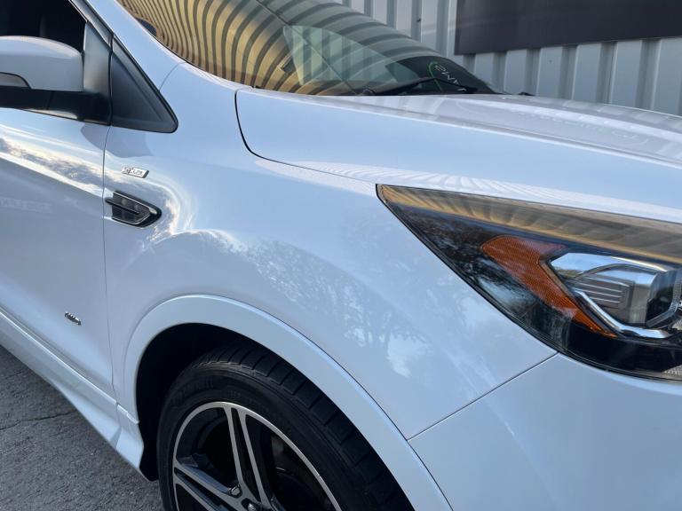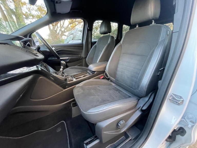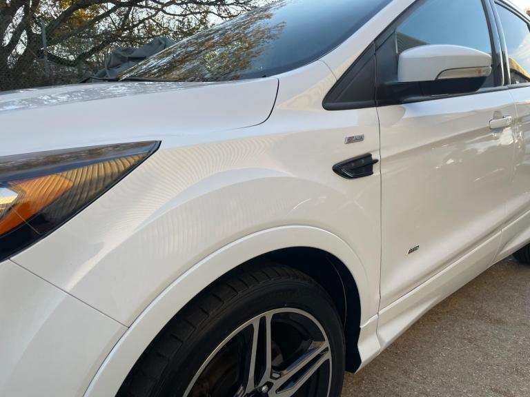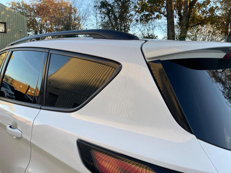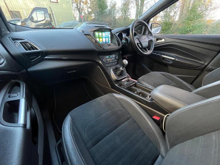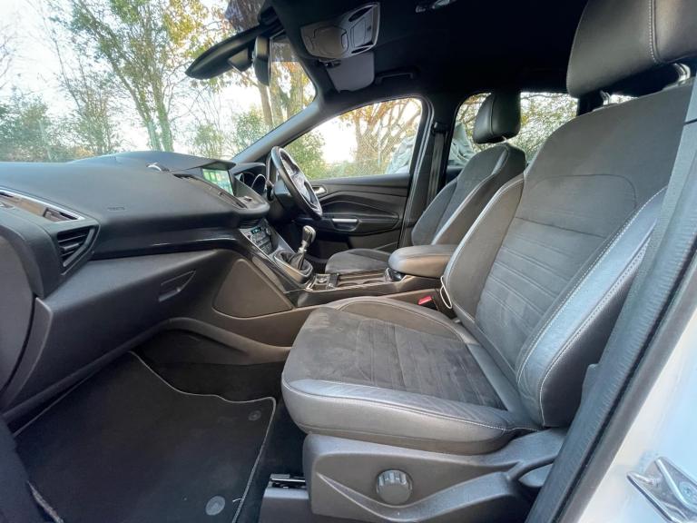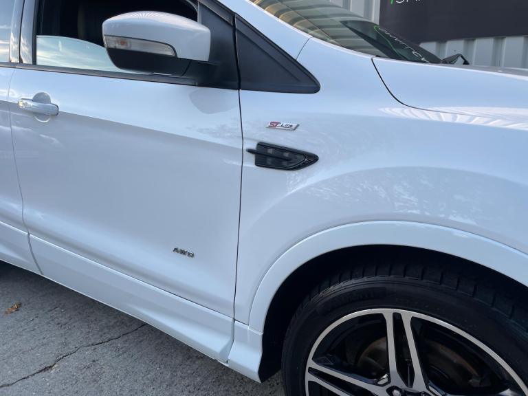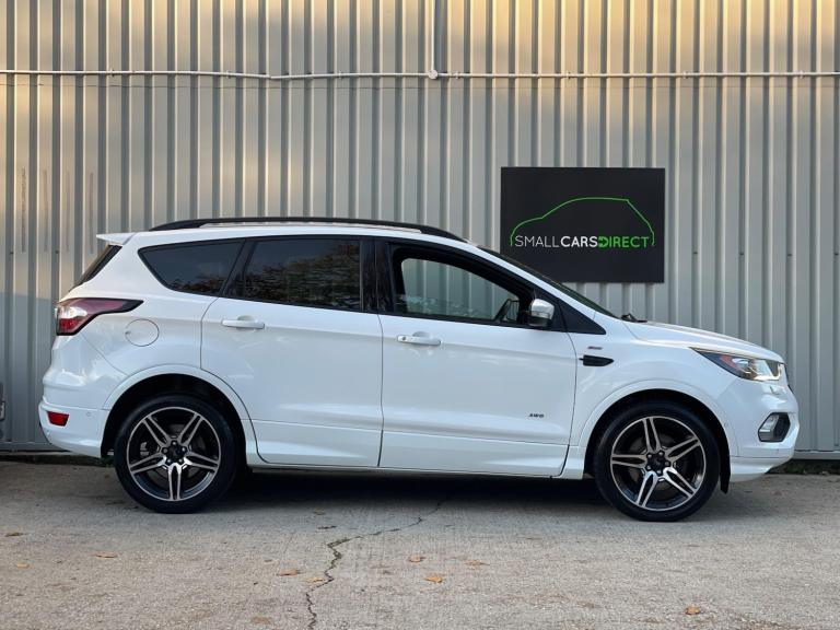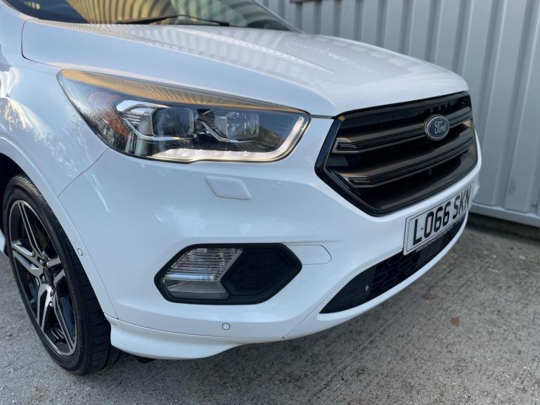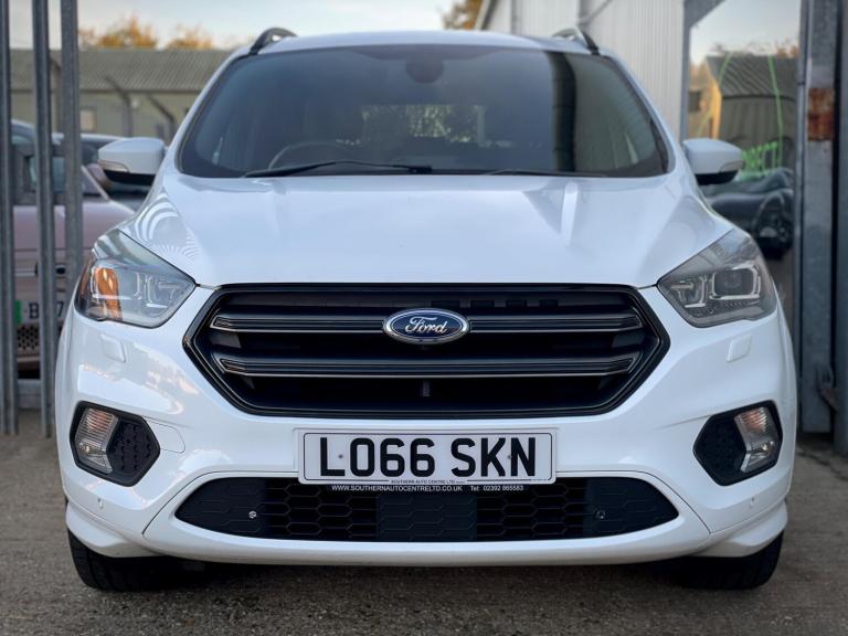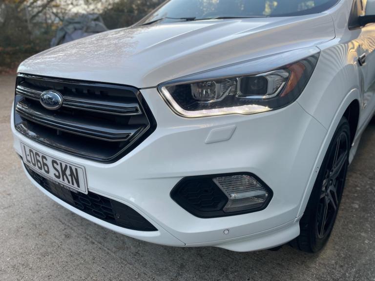 this classy in the white, high spec AWD Kuga the perfect mix of practicality, performance and sporty style. Finished in Frozen White, this Kuga really looks the part with its ST-Line body styling, gloss black detailing and 19-inch 5 dual spoke alloy wheels. Its covered 95,719 miles and comes with an excellent service record stamps at 13k, 25k, 36k, 50k, 61k, 75k, 78k and 95k miles showing its been properly cared for throughout its life. Supplied with an MOT until November 2026, its ready to drive away.Under the bonnet, youll find Fords proven 2.0-litre TDCi diesel engine producing 180PS, matched to a 6-speed manual gearbox and intelligent All-Wheel Drive system. It delivers strong mid-range performance, surefooted handling and Bucket loads of spec including park assist and even a heated steering wheel. The ride is composed and confident, while the ST-Line sports suspension adds just the right amount of agility.Inside, the cabin is smart, modern and well-equipped. The Vector Cloth/Torino partial leather sport seats provide comfort and support, and the Ford SYNC3 Premium DAB Navigation system includes touchscreen control, Bluetooth, Apple/Android connectivity and voice command. Other highlights include a Winter Pack with heated front seats and heated windscreen, rear view camera, power tailgate, dual-zone climate control, cruise control, automatic headlights and wipers, and rear privacy glass. Everything youd expect from a top-spec ST-Line.Low rate finance options available subject to status from just 8.9%, apply right now on our website. 450 admin fee applies for using your own finance company such as Zuto, CF247, CarMoney etc try us first as we can cater for good and poor credit profiles. This Smart can be secured with a non-returnable reservation fee of 100, which takes it off sale for 3 days. We offer UK delivery and strong part exchange prices. Read our 350+ reviews across Google and AutoTrader and find out why we were crowned the UKs Best Car Dealer in 2024.