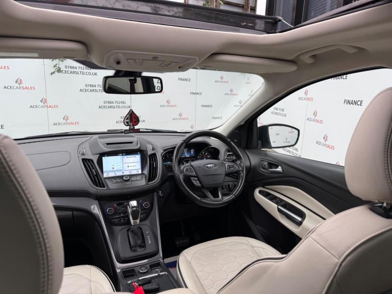 FINANCE & PCP AVAILABLE, COMPLEMENTARY WARRANTY INCLUDED, GOOD CONDITION, WE TAKE PART EXCHANGE! Ford Kuga 2.0 TDCi EcoBlue Vignale Powershift AWD Euro 6 (s/s) 5dr. HPI Clear, Full Service History, 12 Months MOT Included With No Advisories, 1 Owner, 2 Keys, EURO6 ULEZ Compliant, Vignale Edition, Panoramic Glass Sunroof Sliding/Tilting, Keyless Entry, Keyless Start, Cruise Control, Speed Limiting Function, Reverse Camera, Parking Sensors, Park Assist Function, Start/Stop Function, All Wheel Drive, Electric Power Assisted Steering, Hill Start Assist, Electric Parking Brake, Traction Control, Electronic Stability Programme, Anti-lock Braking System, Emergency Brake Assist, Tyre Pressure Monitoring System, Headlights - Automatic, Bi-Xenon Headlights with Dynamic Bending Adaptive Beam Shape, LED Daytime Running Lights, Fog Lights - Front, Rear Lights - LED, Interior Ambient Lighting, Rain Sensitive Windshield Wipers, Electric Opening/Closing Tailgate, Electric Windows, Electric Mirrors, Powerfolding Mirrors, Electric Front Drivers Seat With Memory Function, Front Heated Seats, Heated Steering Wheel, Automatic Dual Zone Climate Control, Air Conditioning, Front Heated Screen, Rear Screen Demister, Colour Touchscreen Media Interface, Drivers Information Cluster, SONY Sound System, Navigation, Traffic Information, Android Auto, Bluetooth, Radio, DAB, AUX, USB, Telephone Connection, Full Leather Seats In Cream Vignale Design, Rear Table Trays, Vignale Design Door Sills, Privacy Glass, Roof Rails, Exterior Badging, 19inch Alloy Wheels.ALL VEHICLES ARE FULLY INSPECTED PRIOR TO SALE. Wish to make this purchase hassle free with ease? Feel free to enquire about our competitive Financial packages. We can assist you in securing finance for your New car with ease- regardless of your credit status/history. All of our cars are regularly price checked to be amongst the most competitive on the market! We include a COMPLEMENTARY WARRANTY on all our vehicles. Be our next happy customer today! [Website URL removed]