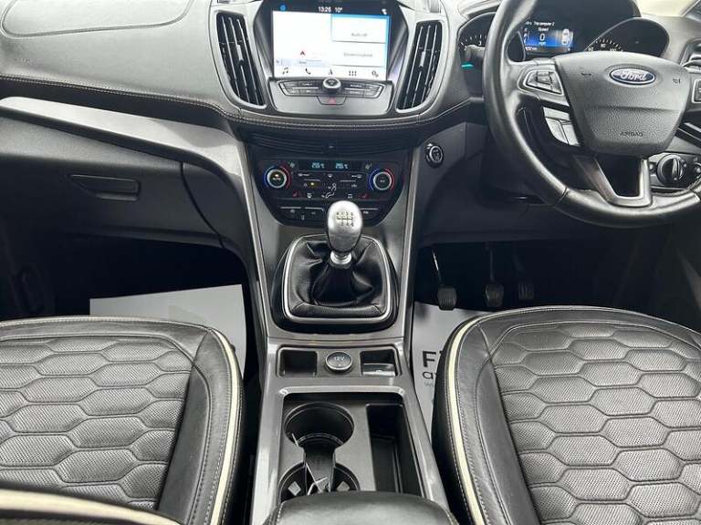 Accessory Power Socket - 12V, Accessory Power Socket - 12v in Luggage Compartment, Audible Text Messaging - Voice Control and USB Connectivity, Premium Ford DAB Navigation System with Ford SYNC3, SYNC3 with 8in Touchscreen DAB Audio System, Cruise Control with Active Speed Limiter, Enhanced Active Park Assist, Gear Shift Indicator, Rear Parking Sensors, Rear View Camera, Tyre Pressure Monitoring System, 18in Alloy Wheels - Unique 5x2-Spoke - ST-Line X Vignale, Electric Windows - Front and Rear with Global Opening-Closing and One Touch, Front Lower Grille - Black, Front Upper Grille - Honeycombe Grille with Chrome Surround, Locking Wheel Nuts, Mini Spare Wheel, Power Folding Door Mirrors with Puddle Lights, Quickclear Heated Front Windscreen with Heated Washer Jets, Scuff Plates - Vignale, Twin Exhausts and Rear Diffuser, Vignale Body Styling Kit, Automatic Headlights - Rain Sensing Wipers - Auto Dimming Rear View Mirror, Bi-Xenon Headlights with Dynamic Bending Adaptive Beam Shape, Fog Lights - Front, LED Daytime Running Lights, Rear Lights - LED, Armrest - Folding Centre - Rear, Automatic Dimming Rear View Mirror, Centre Console, Courtesy Light - Footwell Illumination, Courtesy Light - Front and Rear, DEATC - Dual-Zone Electronic Automatic Temperature Control, Door Lever - Chrome Finish, Flat Load Floor Board, Front Seats - 4-Way Front Head Restraints - Up-Down, Front Seats - Seat-Back Map Pockets, Handsfree Power Tailgate, Keyless Start, Multi-Colour Ambient Interior Lighting, Premium Floor Mats with Double Stitching, Rain Sensitive Windshield Wipers, Rear Floor Mats, Rear Seat - 60-40 Split Folding Seat Back and Cushion with Multi-Step Recline Function, Seats - Drivers 10-Way Power Adjustment, Seats - Drivers Lumbar Support, Seats - Front Sports, Seats - Passenger Lumbar Support, Steering Column - Rake and Reach Adjustment, Tie-Down Hooks, Tonneau Cover, Vignale Leather Interior Finishing, Vignale Leather Steering Wheel, EPAS - Electric Power Assisted Steering, Airbags - Driver and Front Passenger, Airbags - Drivers and Front Passenger Front Side - Front and Rear Curtain, Airbags - Drivers Knee, Airbags - Front Side Impact, Child Locks - Manually Adjustable Rear Door Locks, Electric Parking Brake, ESP - Electronic Stability Programme, Ford Easy-Fuel Capless Refuelling System, Hill Start Assist, IPS - Intelligent Protection System, Keyless Opening with Hands Free Power Tailgate, Locks - Remote Central with Double Locking, Seats - ISOFIX Mounting Provision for Child Seats - Outer Seats Only, Tailgate Wash-Wipe, Thatcham Category 1 Alarm.With an MOT valid until August 2026 and only two previous owners, this 2017 Ford Kuga TDCi Vignale presents a compelling proposition. This Euro 6 compliant 2.0L diesel model boasts a low mileage of just 58,037 miles, a testament to its careful use. The Vignale trim level ensures a premium experience, enhanced by features such as 10 way power adjustable driver's seat with memory function and dual zone electronic automatic climate control. Parking is made simpler with rear parking sensors and a rear view camera, all integrated with the Premium Ford DAB Navigation System featuring Ford SYNC3 and Bluetooth connectivity. A clear vehicle history check and a 6 month warranty provide further peace of mind.This Ford Kuga stands out with its impressive fuel economy, achieving an excellent 60 miles per gallon, which is significantly better than many comparable vehicles. Furthermore, its low CO2 emissions contribute to a more environmentally conscious drive. The partial service history indicates that the vehicle has been maintained, and combined with its low mileage and long MOT, this Kuga offers a well rounded package for any discerning driver.