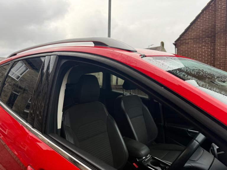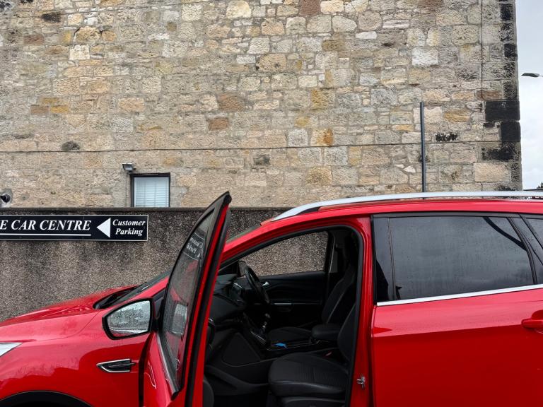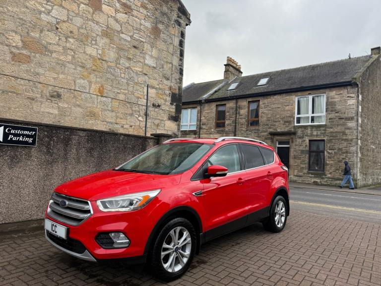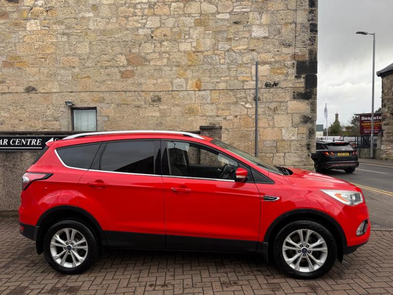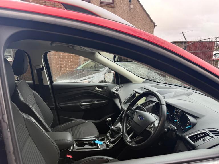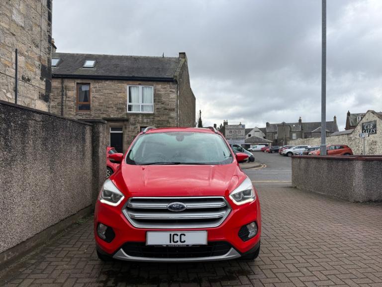 2017 FORD KUGA 1.5 TDCI TITANIUM TURBO DIESEL 5DR RED , BODYKIT FITTED, TITANIUM MULTISPOKE ALLOY WHEELS, WIDESCREEN COLOUR SATNAV SYSTEM, LED DAYTIME RUNNING LIGHTS, LEATHER SPORTS SEATS, SYNC 3 MEDIA WITH PREMIUM DAB SOUND SYSTEM, CRUISE CONTROL, BLUETOOTH HANDSFREE PHONE SYSTEM WITH VOICE RECOGNITION AND AUDIBLE TEXT MESSAGING, TWIN SPORTS EXHAUST, KEYLESS GO, WILL COME WITH 1 YEARS MOT ON COLLECTION+ FREE PARTS+ LABOUR WARRANTY+ NEW CARPET MATS.