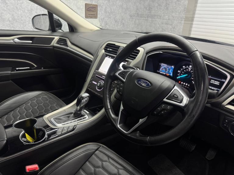MOT 02 Dec 2026 / ROAD TAX 195 / 5 SERVICES / 2 KEYS Navigation HDDParking Sensor(s)Climate ControlLeather Trim18'' Alloy WheelsSunroofPrivacy GlassThis vehicle comes fully prepared and ready to drive away, giving you complete peace of mind:Fresh Service CompletedMinimum 6 Months MOT3 Months Warranty Included (extendable)12 Months Nationwide Breakdown CoverComprehensive Mechanical Health CheckFinance Available at Very Competitive Rates Instant decision within 30 secondsThis 2017 Ford Mondeo TDCi Vignale offers excellent provenance with only two previous owners and a clear vehicle history check. It is a Euro 6 compliant model, powered by an efficient 2.0L diesel engine. The Vignale trim level ensures a premium experience, featuring the Ford KeyFree System with a Power Starter Button for effortless entry and ignition, alongside a driver's seat offering 10 way power adjustment with memory and variable heating. Entertainment and navigation are handled by a Sony DAB audio system with a touchscreen and 12 speakers, while dual zone electronic automatic climate control keeps the cabin at the perfect temperature. Parking is made simpler with a rear view camera and parking assistance.This Mondeo stands out with its impressive fuel economy, achieving a highlight of 57 miles per gallon, which is better than many similar vehicles. Its low CO2 emissions also contribute to its appeal, indicating a more environmentally conscious choice. Furthermore, the generous boot space provides ample room for luggage or shopping, making it a practical option for families or those who require extra carrying capacity.