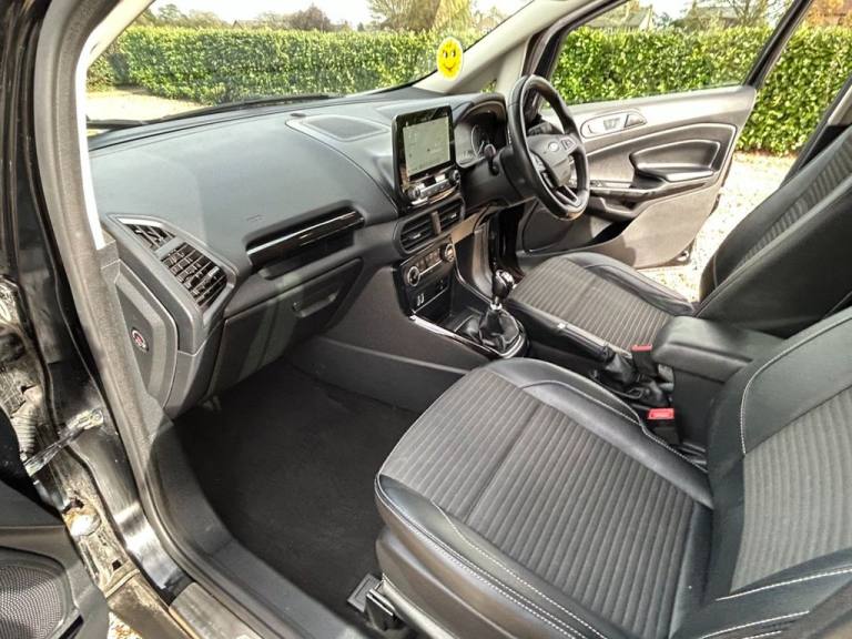 FORD ECOSPORT 1.0T EcoBoost Titanium SUV 5dr Petrol Manual Euro 6 (s/s) (125 ps) 2018 42,720 miles 1 ltr Black Petrol Manual 1.0 t ecoboost.will come with a full mot, full service history, blue tooth/ dab radio / sat nav, blue chip warranty, rear parking camera, 17in Alloy Wheels - 10 Spoke Flash Grey Machined, Adjustable Boot Load Floor, Airbags - Curtain, Airbags - Driver and Front Passenger, Airbags - Drivers Knee, Airbags - Front Passenger De-Activation Switch, Alarm - Thatcham Category 1 with Volume Sensing and Perimeter, Ambient Lighting - Instrument Panel and Footwell, Analogue Instrument Cluster, Anti-Lock Braking System - ABS with Electronic Stability Control - ESC, Automatic Dimming Rear View Mirror, Automatic Headlights, Centre Console Cup Holder with Chrome Accent, Centre Console with Sliding Armrest, Child Locks, Chrome Headlight Bezel, Courtesy Light - Front with Two Map Lights, Courtesy Light - Rear, Cruise Control, Door Frame Beltline - Chrome, Door Handles - Body Colour, Door Mirrors - Power-Foldable Heated with Integrated Side Indicator and Puddle Lights, Driver Seat Manual Height- Fore/Aft and Seatback Angle Adjustment and Recliner, Driver Seat Manual Rotary Knob Lumbar Support Adjustment, Driver and Passengers Sun Visor with Covered Vanity Mirror and Ticket Strip on Drivers Side, Drivers Stowage Glovebox, EPAS - Electric Power Assisted Steering, Electronic Automatic Temperature Control - EATC, Emergency Assistance, Engine Immobiliser, Ford DAB Navigation System with Ford SYNC3, Ford Easy Fuel - Capless Refuelling System, Front 2-Way Head Restraints, Front Fog Lights, Front Grille - Chrome, Front Seat - Passenger Manual - Fore-Aft and Recline Adjustment, Front Seats - 3 Point Seat Belts with Load Limiter and Seatbelt Height Adjust, Front Seats - Seat-Back Map Pockets, Front Suspension - Independent with MacPherson Struts and Anti-Roll Bar, Front and Rear Bumper - Body Colour with Dark Insert, Front and Rear Floor Mats, Front and Rear Folding Grab Handles, Front and Rear Power Points - 12V, Full Length Overhead Console with Sunglasses Holder, Gear Shift Indicator, Gearshift Knob - Black Insert and Chrome-Finish Ring, Glovebox with Cool Bin - Lid and Illumination, Halogen Headlamps with LED Day Running Lights, Halogen Rear Lights, Handbrake Grip - Leather-Trimmed, Headlights - Courtesy Delay, Headlights - Levelling Control, High Mounted Brake Light, IPS - Intelligent Protection System, Keyless Start with Ford Power Start Button, Load Compartment - Lights, Load Compartment Carpet, Load Compartment Side Trim Incorporating Shopping Hooks, Lower Body Side - Door Claddings - Bl