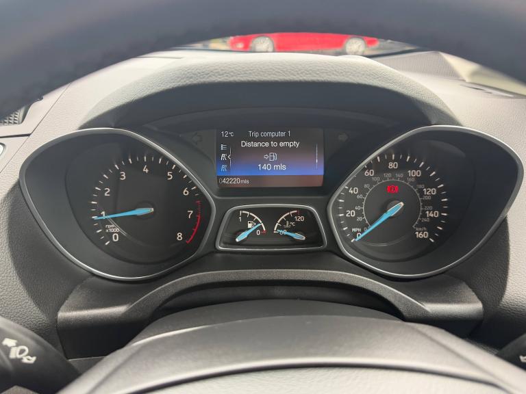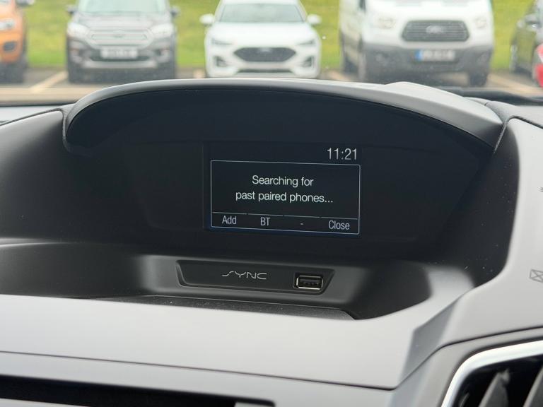 3x3 point rear seatbelts, ABS + traction control, Active city stop, Driver and passenger airbags, Driver and passenger side airbags, Electronic brake force distribution, Emergency brake assist, ESP, Fasten seatbelt reminder, Front and rear curtain airbags, Height adjustable front seatbelts, Hill start assist, Intelligent Protection System (IPS), Tyre pressure monitoring system, Cruise control with active speed limiter, Driver's information system, Easy fuel capless refuelling system, Electric power steering, Trip computer, Body colour bumpers with black rubbing strip, Body colour door handles, Body colour door mirrors with integral indicators, Chrome beltline trim, Chrome finish on upper door line, Electric front windows, Front fog lamps, Heated door mirrors, Intermittent rear wash/wipe, Quickclear heated windscreen, Solid paint, 12V accessory sockets - front and rear, Air conditioning, Auxiliary power socket, Centre armrest with storage box, Cloth upholstery, Courtesy light in luggage compartment, Driver seat lumbar adjustment, Driver's seat manual height adjust, Front floor mats, Front/rear courtesy lights, Fully adjustable front headrests, ISOFIX child safety seat attachments, Leather gearknob, Premium centre console with armrest, Rake/reach adjustable steering wheel, Rear parcel shelf, Satin chrome interior door handles, Sports style front seats, Three height adjustable rear head restraints, Versatile split folding rear seat - 40/20/40, Satin black trim, Anti-theft immobiliser, Locking wheel nuts, MyKey system, Remote central double locking, Thatcham 1 volume sensing alarm, Ford SYNC 3 DAB audio system includes 8 inch colour touch screen with bluetooth and advanced voice control of audio and emergency assistance, Steering wheel mounted audio controls, 16 inch 5x2 spoke alloy wheels, Mini steel spare wheel