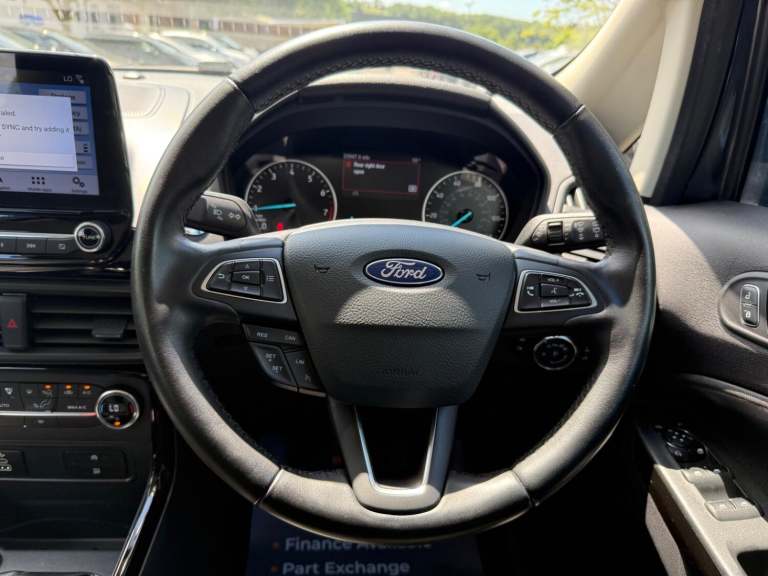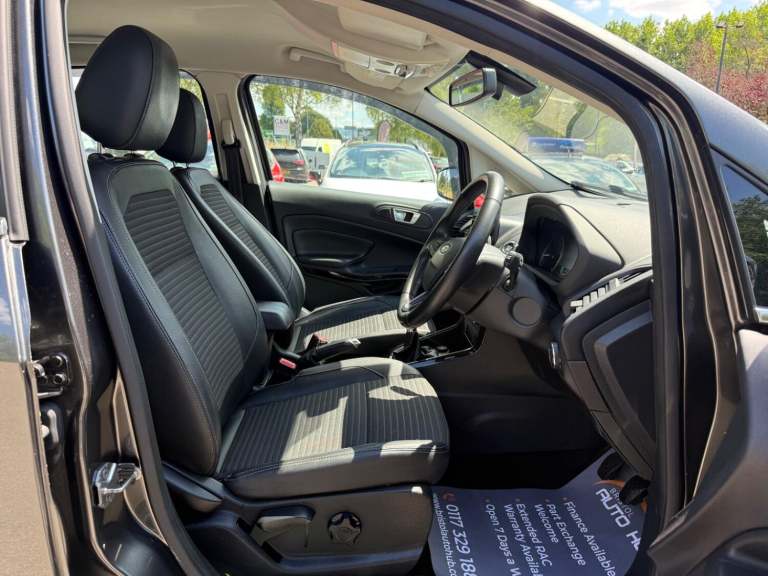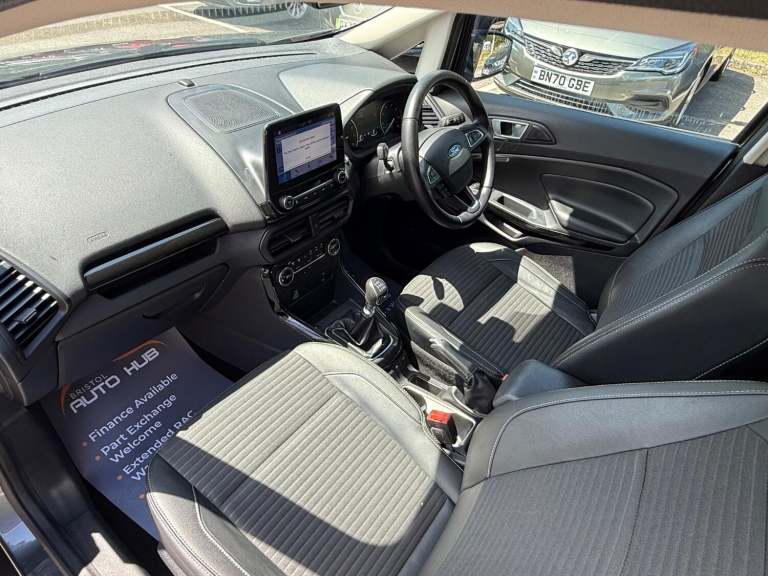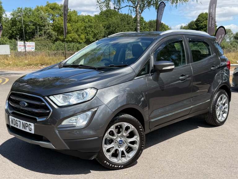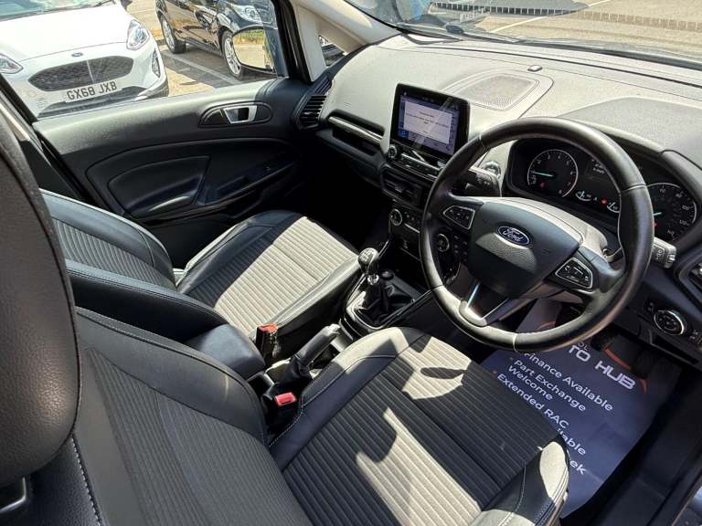 2018 Ford Ecosport 1.0 T EcoBoost Titanium Petrol Manual 5 Door SUV With Only 53,958 Miles, MOT Until 25092026 - No Advisories, Great Service History - Last Service Including New Turbo at 53,903 Miles (02072025), New Wet Belt Replaced 53,840 Miles (07052025), ULEZ Compliant - No Clean Air Zone Charges, Only £195 Road Tax Per Year, Very Economical - 61.4 MPG (Extra Urban), Only 3 Former Keepers, Great Boot Space - 356 Liters, In Great Condition Throughout, This Compact SUV Combines A Spacious Interior With A Fuel-Efficient Petrol Engine, Perfect For Those Seeking An Economical Vehicle With Ample Room For Passengers And Luggage. This Popular Titanium Model Comes With Extras Such As - Ford DAB Satelite Navigation System With Ford SYNC3, Bluetooth, Emergency Assistance, Front and Rear Power Points - 12V, Electronic Automatic Temperature Control, Air Conditioning, Cruise Control, Gear Shift Indicator, Rear View Camera With Rear Parking Sensors, Power-Foldable and Heated Wing mirrors, Quickclear Heated Front Windscreen With Heated Washer Jets, Automatic Headlights, Automatic Dimming Rear View Mirror, Rain Sensing Wipers, Multifunctional Steering Wheel, Ford Easy Fuel - Capless Refuelling System, Electric Windows, 17in Alloy Wheels, Intelligent Protection System, ISOFIX, Remote Central Locking, Keyless Start, 2 x Remote Keys All Vehicles Are Fully Valeted With A 45 point inspection check undertaken, Part Exchange & Test Drive Welcome, Finance Available On All Cars - Come Direct For No Admin Fees & Competitive Prices - Good and Bad Credit Welcome - No Obligation Quote, 3 - 36 Month Warranty Available, Open 7 Days A Week. For More Pictures and Info Please Visit [Website URL removed] The specification is for a typical vehicle of this model and year when manufactured. Every effort has been made to ensure the accuracy of the information provided however there may be differences to the specification of the actual vehicle in stock, or the vehicle may have been modified. Do not rely entirely on the listed specification and please check to confirm that any features which may influence your decision to buy are present, and the actual specification of the vehicle meets your requirements and expectations.