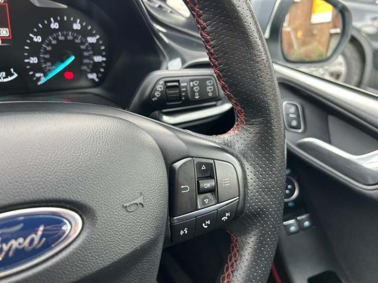 4.2in TFT Instrument Cluster Screen, Ford Navigation System with Ford SYNC 3 - Apple CarPlay and Android Auto, Cruise Control, Driver Alert, TSR - Traffic Sign Recognition, Trip Computer, Tyre Pressure Monitoring System - TPMS, 17in Alloy Wheels - ST-Line 5-Spoke - Rock Metallic, Black Belt Line Finisher, Door Handles - Body Colour, Door Mirrors - Electrically-Operated and Heated - Power-Foldable with Integrated Side Indicators - Body Colour Housings and Puddle Lights, Front Bumper - Unique ST-Line, Front Door Threshold Plates - ST-Line, Large Rear Spoiler - Body Colour with Centre High Mounted Stop Light, Quickclear Heated Windscreen, Rear Bumper - Unique ST-Line, Rear Privacy Glass, ST-Line Side Skirt Body Mouldings - Body Colour, Tyre Repair Kit, Unique ST-Line Upper Grille and Full Bodystyling Kit with ST-Line Wing Badges, Windows - Electrically Operated Front with One Touch Lowering-Closing on Drivers Side, Headlights - Automatic On-Off and Highbeam, Headlights - Halogen Projector with Black Bezel and Dedicated LED Daytime Running Lights, Rear Lights - LED Night Signature, ST-Line Front Fog Lamps with Cornering Lights, Air Conditioning - Electronic Automatic Temperature Control - EATC, Automatic Rain Sensing Wipers and Auto-Dimming Rear View Mirror, Centre Console with Armrest and Illuminated Cupholders, Courtesy Light - Ambient LED Courtesy Lighting Cup Holder, Courtesy Light - Front Map Light and Rear - Overhead LED, Door Lever - Chrome Finish, Driver and Passenger Seat