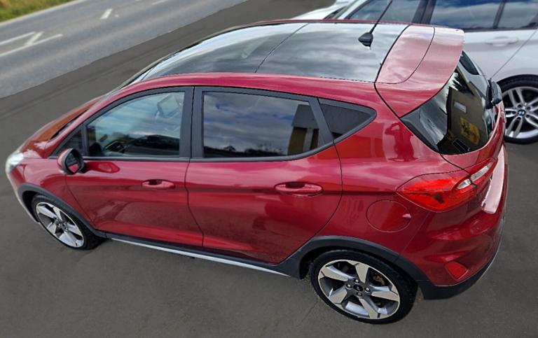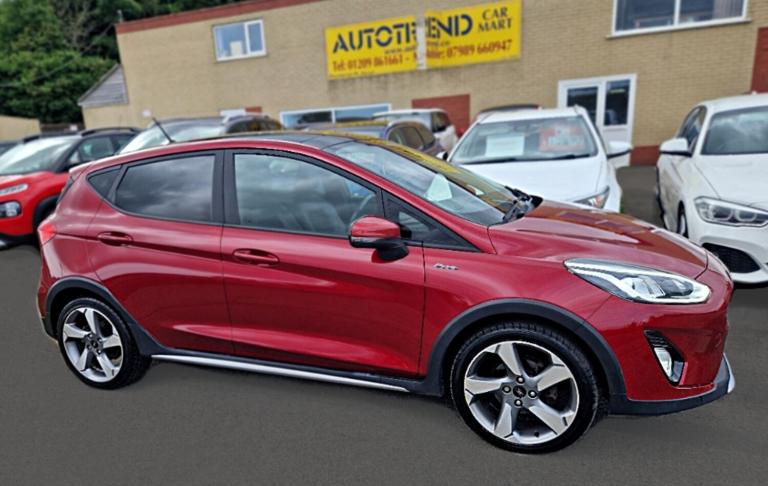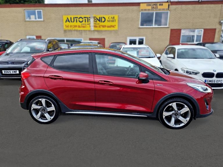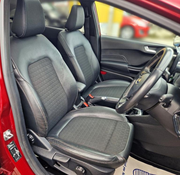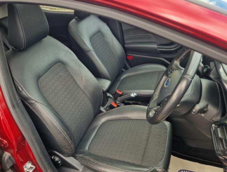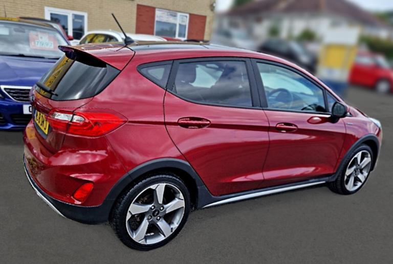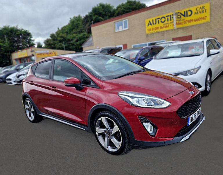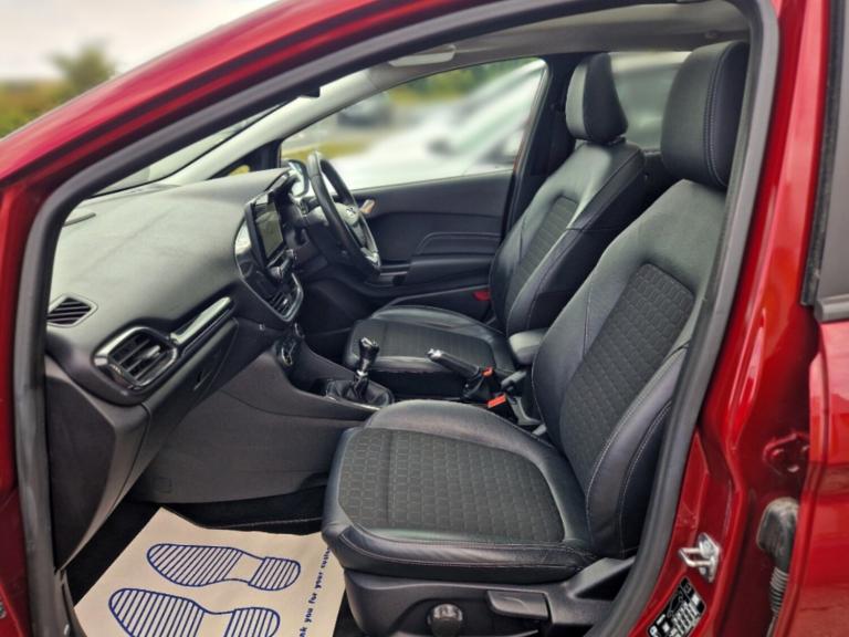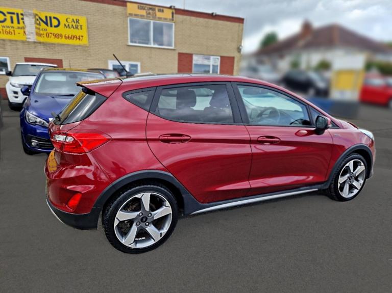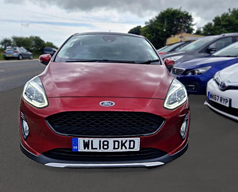 2018(18) FORD FIESTA ACTIVE-X 1.0 TURBO 140psi.. Stunning, SPORTY 5-Door Hatchback in RUBY RED Pearly Metallic.. Large Panoramic Glass Roof,, 17"" Diamond-Cut 5-Spoke Alloy Wheels.. Rear Privacy Glass.. Satin Silver Trims.. Colour matched Bumpers, Door Mirrors, Handles and Rear Spoiler.. Front Sports Bumper with Fog Lamps.. Mesh Grill.. Black Part Leather Seats With Square Graphics and Silver Stitching Detail.. Height Adjustable Heated Front Sports Seats.. Multi-Function Leather Sports Steering Wheel with Chrome Insert.. Rake and Reach Steering Column.. Piano Black and Chrome Interior Trim.. Large Touch Screen Satnav/Radio/Media/Bluetooth/Phone Connectivity.. 2x USB Ports.. AUX.. 12v Power Outlet.. Centre Console With Cup-Holders.. Stop/Start.. Cruise Control with Limiter.. Fast Clear Windscreen.. Digital A/C Climate Control.. All Electric windows.. Remote Central Locking (2-Keys).. Locally Owned Sporty Car with A FULL FORD Dealer Service History.. £10997