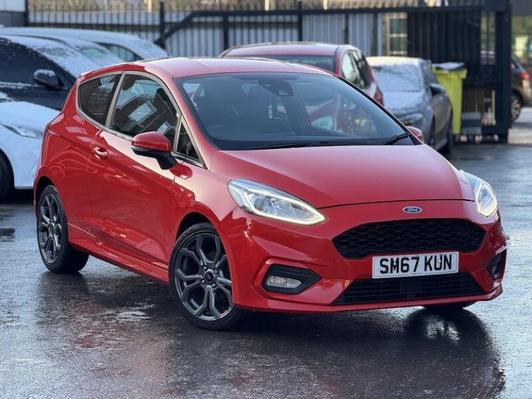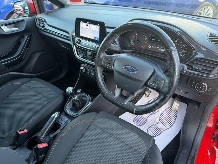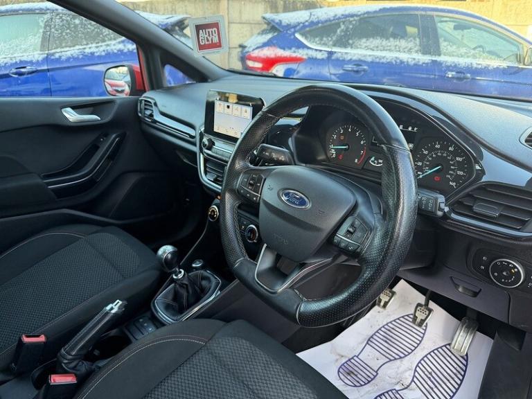 Ford DAB Radio with Ford SYNC3 - Apple Car Play and Android Auto, Trip Computer, Tyre Pressure Monitoring System - TPMS, 17in Alloy Wheels - ST-Line 5-Spoke - Rock Metallic, Black Belt Line Finisher, Body Coloured Electrically Operated Door Mirrors with Integrated Side Indicators, Door Handles - Body Colour, Electrically-Operated Front Windows with One Touch Drivers, Front Bumper - Unique ST-Line, Quickclear Heated Windscreen, Rear Bumper - Unique ST-Line, Rear Spoiler - Body Colour - Large, ST Line Front Scuff Plates, ST-Line Side Skirt Body Mouldings - Body Colour, Tyre Repair Kit, Unique ST-Line Upper Grille and Full Bodystyling Kit with ST-Line Wing Badges, Wipers - Standard with 6 Speed Interval Settings, Headlights - Automatic On-Off, Headlights - Halogen Projector with Black Bezel and Dedicated LED Daytime Running Lights, ST-Line Front Fog Lamps with Cornering Lights, Air Conditioning - Manual, Centre Console with Armrest and Illuminated Cupholders, Courtesy Light - Ambient LED Courtesy Lighting Cup Holder, Courtesy Light - Front Map Light and Rear - Overhead LED, Door Lever - Chrome Finish, Front Seats - Sports Style, Gearshift Knob - ST -Line Leather Trimmed with Aluminium Inset and Metal Grey Gaiter Stitching, Glovebox - Illuminated, Headliner - Woven, Leather-Trimmed Handbrake, Manual Drivers Seat Height Adjustment, MyKey, Overhead Console - Sunglasses Holder, Rear Fog Lamps, Rear Seat - 60-40 Split Back and Cushion, Sports Pedals, ST Floor Mats - Front and Rear, Steering Column - Rake and Reach Adjustment, Steering Wheel - ST-Line 3-Spoke Leather Trimmed Flat Bottomed, Warning Triangle Storage, Power Steering, Sports Tuned Suspension, ABS - Anti-lock Braking System, Airbags - Driver, Airbags - Front and Rear Side Curtain, Airbags - Front Passenger, Airbags - Side Curtain, Airbags - Side Impact, EBD - Electronic Brakeforce Distribution, Electronic Stability Control - ESC with Traction Control and Emergency Brake Assist - EBA, Electronic Stability Programme - ESP with Hill Start Assist, Ford Easy Fuel System, IPS - Intelligent Protection System, NCAP Pack, Remote Central Locking and Engine Immobiliser, Tailgate Wash-Wipe, Thatcham Alarm.Here we have a Ford Fiesta ST-Line 1.0 Petrol finished in Candy Red having only done 71k miles from new with a recent service, also comes with a 12 Month MOT with no advisories.The interior and exterior of the car have been looked after very well, it starts and drives perfectly with no issues at all. Being the ST-Line top of the range spec, this vehicle benefits from Navigation, Apple Car Play, ST-Line Body Kit, Cruise Control, , Bluetooth phone connectivity, Upgraded Alloy Wheels, USB-C and aux capability too. Fully HPI clear. The car will be sold with extendable Warranty. We also offer Part Exchange / Delivery / Finance, HPI report available on request. Please call us on [Phone number removed] for further enquiries. =============================================================================== Why not read our Auto Trader reviews to see what our customers think about their experience here and why they choose to buy from us, =============================================================================== Please contact our sales department for the latest finance offers on this vehicle. We have a dedicated team researching our used car prices daily to make sure we offer the best value cars in the market, =============================================================================== To arrange a personal viewing of this amazing car, or if you would like a tailored video to be emailed to you then please contact us. ===============================================================================Please give us a call for directions. Our postcode for Sat Nav direction is B25 8EL. • Finance subject to status, T&C's apply. , -