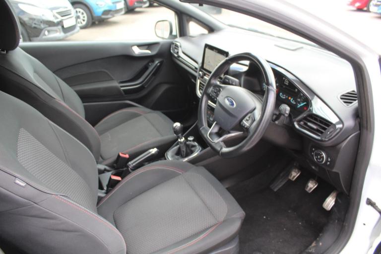 This 2018 Ford Fiesta ST-Line offers a compelling blend of style and technology, making it a standout choice. Powered by an efficient 1.0 litre petrol engine and meeting Euro 6 emissions standards, this model is designed for modern driving. It boasts a striking Frozen White contrast roof and mirrors, complemented by 18 inch ST-Line 5 spoke alloy wheels in Rock Metallic with a machined finish. Inside, you'll find the advanced Ford Navigation System with Ford SYNC 3, providing seamless integration with Apple CarPlay and Android Auto. Further enhancing connectivity is FordPass Connect, featuring an embedded modem for even greater convenience. Automatic headlights ensure optimal visibility, while the DAB radio offers a premium audio experience.The performance of this Fiesta is equally impressive, with a brisk 0-62mph acceleration time of 10.6 seconds. Its low CO2 emissions highlight its efficiency, indicating it is a more economical option compared to similar vehicles. This combination of dynamic performance, advanced technology, and efficient engineering makes this 2018 Ford Fiesta ST-Line a truly desirable car.