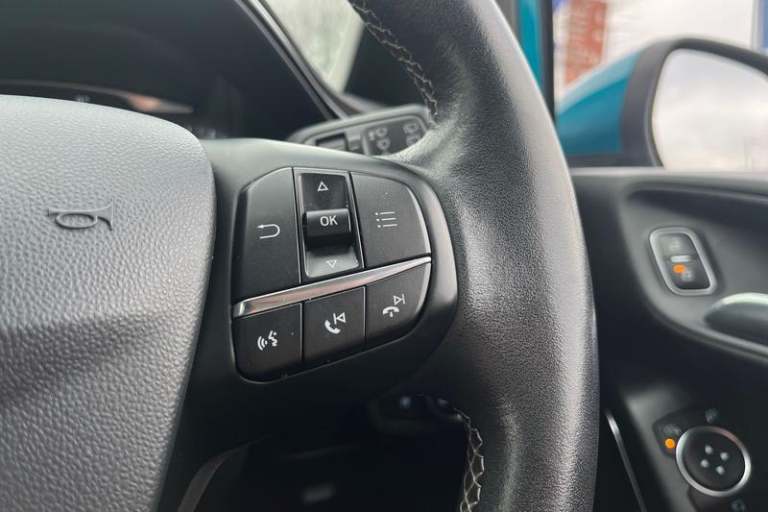 Bluetooth system, Electric power steering, Ford easy fuel, Ford SYNC 3 Navigation system incl 8 touchscreen, 7 speakers, FordPass connect, Apple carplay, android auto, voice control and emergency assistance, Rear parking distance sensors, Trip computer, Body colour bumpers, Body colour door handles, Body colour rear spoiler, Body coloured electrically operated and heated door mirrors with side indicators, Chrome beltline trim, Chrome front grille, Chrome lower window surround, Cornering front fog lights, Electric front windows/one touch facility, Electric rear windows, LED Night signature to rear lights, Power foldable door mirrors with puddle lights, Quickclear heated windscreen, Rain sensing wipers and auto dimming rear view mirror, Rear privacy glass, Rear wiper, 12V Accessory socket in centre console, 3 spoke leather trimmed steering wheel with audio control, 60/40 split folding rear seat, Adjustable head restraints, Boot carpet, Centre console with armrest and illuminated cupholders, Chrome inner door handles, Cloth upholstery, Footwell illumination, Front and rear velour floor mats, Front map reading lights, Front seat and rear pockets, Height adjustable driver's seat, Illuminated glovebox, LED ambient lighting, Load area light, Luxury woven headliner, Manual air conditioning, Overhead console with sunglasses holder, Pollen filter, Rake/reach adjustable steering wheel, Sensico wrapped handbrake and gearknob, 3 point seatbelts on all rear seats, ABS+EBA, Curtain airbags,