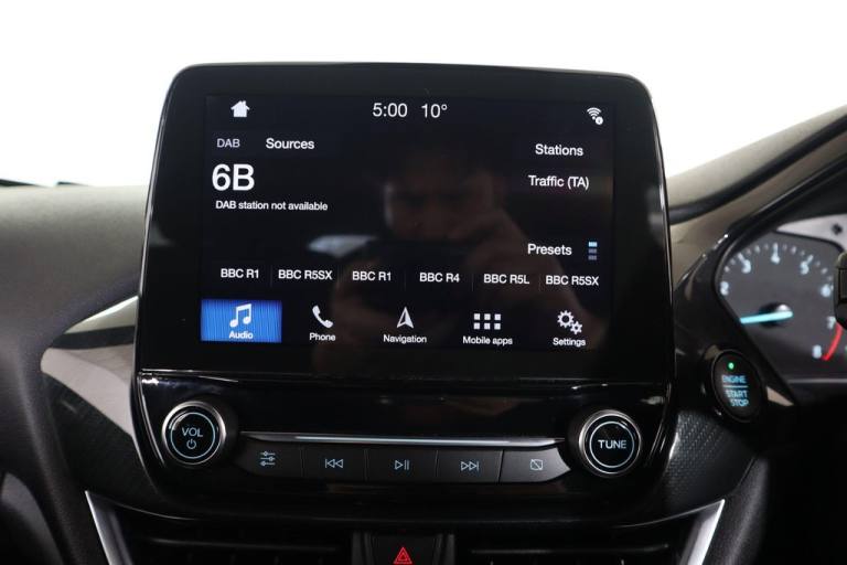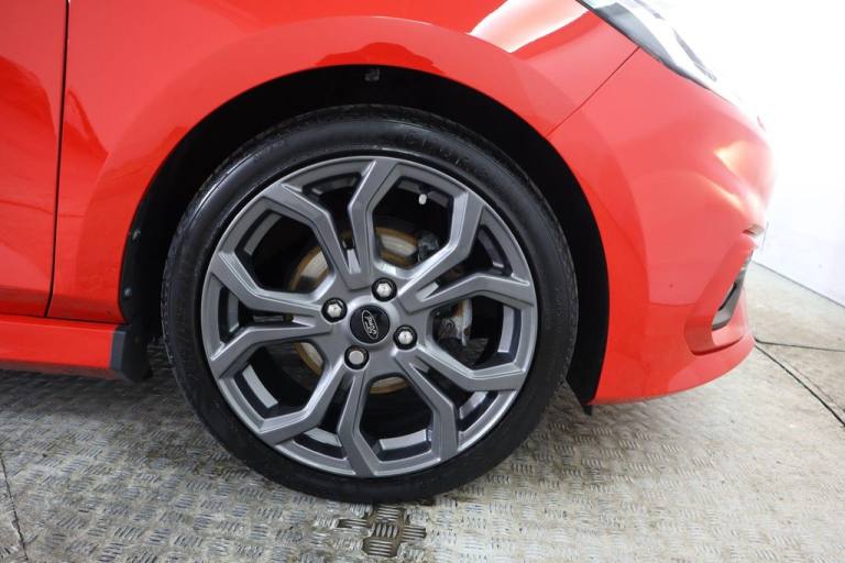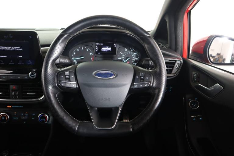 This 2018 Ford Fiesta ST Line boasts exceptionally low mileage for its age, having covered just 31,231 miles. This particular example is a 1.0L petrol model, adhering to Euro 6 emissions standards. Its MOT is valid until April 2027, and a clear vehicle history check confirms its sound condition. The last service was completed on 6th April 2026 at 31,227 miles, indicating comprehensive care. Notable features include manual air conditioning, a Ford DAB radio with Ford SYNC3, and support for Apple CarPlay and Android Auto. The car also benefits from automatic headlights, included as part of the NCAP pack. The Ford Fiesta ST Line offers impressive fuel economy, achieving a highlight of 59 mpg, which is excellent for its class. Its low CO2 emissions further contribute to its cost effectiveness and environmental consideration. For those interested in performance, it accelerates from 0 to 62 mph in 10.6 seconds. These highlights demonstrate that this Fiesta offers a superior combination of efficiency, lower running costs, and responsive driving compared to many other vehicles of its type..17in Alloy Wheels - ST-Line 5-Spoke - Rock Metallic, ABS - Anti-lock Braking System, Air Conditioning - Manual, Airbags - Driver, Airbags - Front and Rear Side Curtain, Airbags - Front Passenger, Airbags - Side Curtain, Airbags - Side Impact, Black Belt Line Finisher, Body Coloured Electrically Operated Door Mirrors with Integrated Side Indicators, Centre Console with Armrest and Illuminated Cupholders, Courtesy Light - Ambient LED Courtesy Lighting Cup Holder, Courtesy Light - Front Map Light and Rear - Overhead LED, Door Handles - Body Colour, Door Lever - Chrome Finish, EBD - Electronic Brakeforce Distribution, Electrically-Operated Front Windows with One Touch Drivers, Electronic Stability Control - ESC with Traction Control and Emergency Brake Assist - EBA, Electronic Stability Programme - ESP with Hill Start Assist, Ford DAB Radio with Ford SYNC3 - Apple Car Play and Android Auto, Ford Easy Fuel System, Front Bumper - Unique ST-Line, Front Seats - Sports Style, Gearshift Knob - ST -Line Leather Trimmed with Aluminium Inset and Metal Grey Gaiter Stitching, Glovebox - Illuminated, Headlights - Automatic On-Off, Headlights - Halogen Projector with Black Bezel and Dedicated LED Daytime Running Lights, Headliner - Woven, IPS - Intelligent Protection System, Leather-Trimmed Handbrake, Manual Drivers Seat Height Adjustment, MyKey, NCAP Pack, Overhead Console - Sunglasses Holder, Power Steering, Quickclear Heated Windscreen, Rear Bumper - Unique ST-Line, Rear Fog Lamps, Rear Seat - 60-40 Split Back and Cushion, Rear Spoiler - Body Colour - Large, Remote Central Locking and Engine Immobiliser, Sports Pedals, Sports Tuned Suspension, ST Floor Mats - Front and Rear, ST Line Front Scuff Plates, ST-Line Front Fog Lamps with Cornering Lights, ST-Line Side Skirt Body Mouldings - Body Colour, Steering Column - Rake and Reach Adjustment, Steering Wheel - ST-Line 3-Spoke Leather Trimmed Flat Bottomed, Tailgate Wash-Wipe, Thatcham Alarm, Trip Computer, Tyre Pressure Monitoring System - TPMS, Tyre Repair Kit, Unique ST-Line Upper Grille and Full Bodystyling Kit with ST-Line Wing Badges, Warning Triangle Storage, Wipers - Standard with 6 Speed Interval Settings