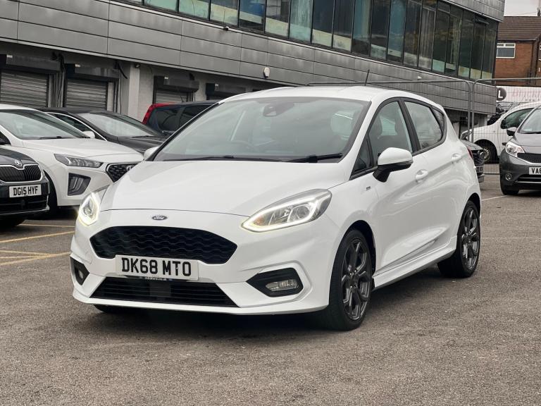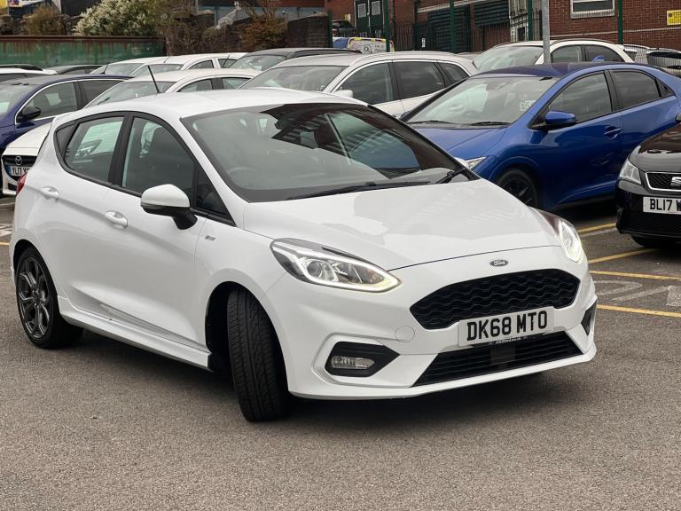 This 2018 Ford Fiesta ST Line offers an engaging driving experience with its responsive 1.0L petrol engine. As a Euro 6 compliant vehicle, it benefits from low CO2 emissions, making it an economical choice. This model comes equipped with the Ford SYNC system, featuring a touchscreen, DAB radio, and seamless integration for both Apple CarPlay and Android Auto, alongside Bluetooth connectivity. For comfort, it includes manual air conditioning, and for convenience and safety, it boasts automatic headlights.The acceleration of this Fiesta ST Line is noteworthy, reaching 0-62mph in just 10.0 seconds, demonstrating its spirited performance. These features, combined with its Euro 6 rating and low CO2 emissions, indicate that this Ford Fiesta ST Line provides a more efficient and enjoyable drive compared to many other vehicles in its class.We sell all of our car with 3 months warranty all our warranties are extendable ( at a small cost ) and we currently have a deal on all of our extended warranties. We consider ANY PART EXCHANGE and we can deliver this vehicle anywhere in the UK ( fees may be applicable ). Please bring your drivers license if you would like a test drive. If you have any questions/ queries please dont hesitate to give us a call.
