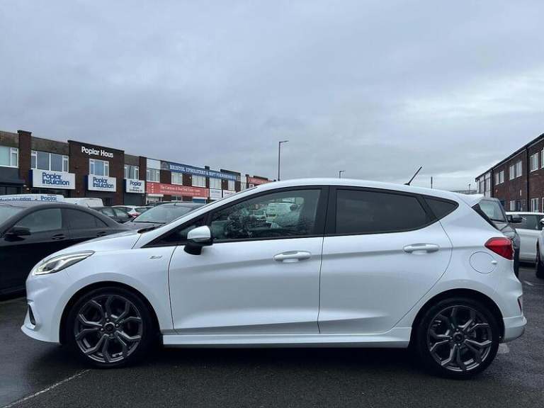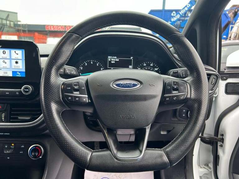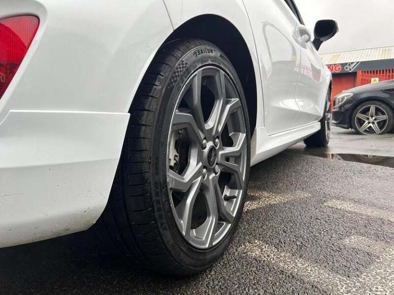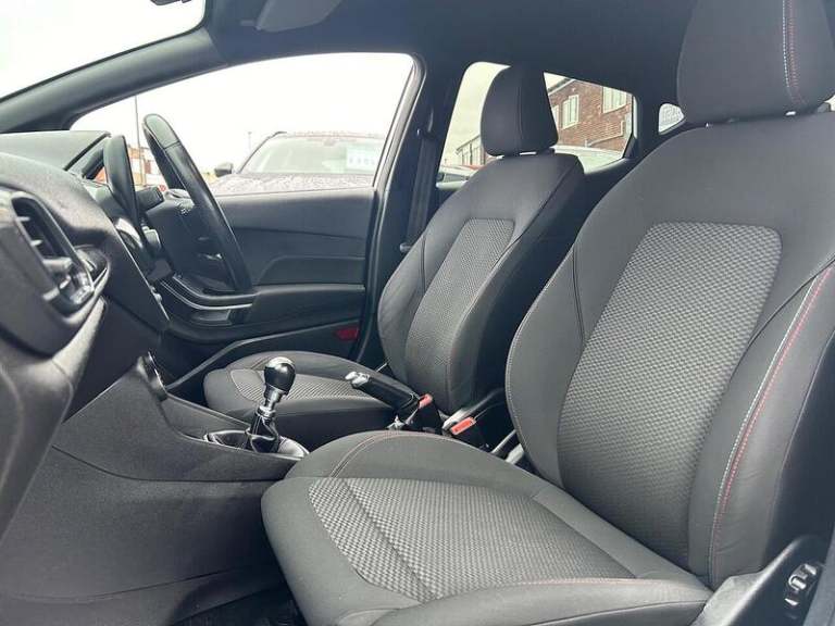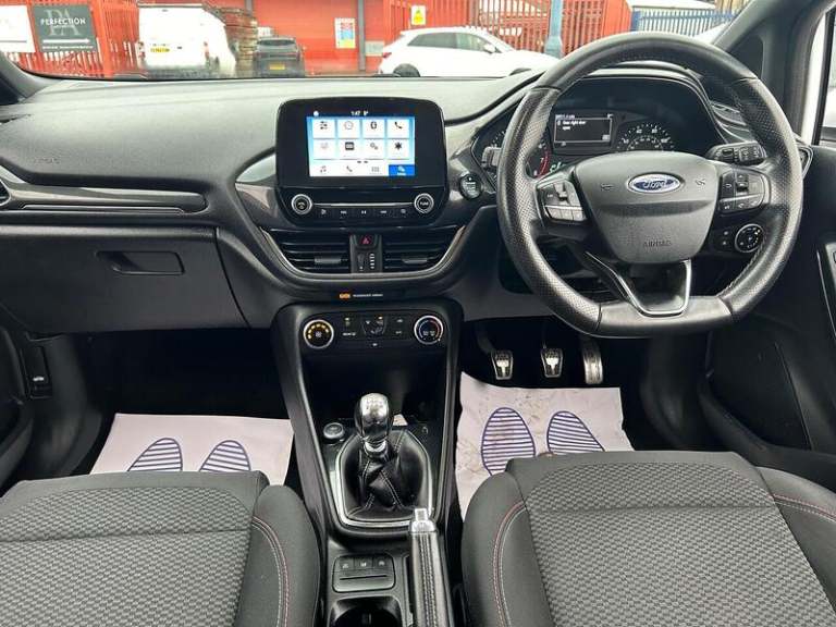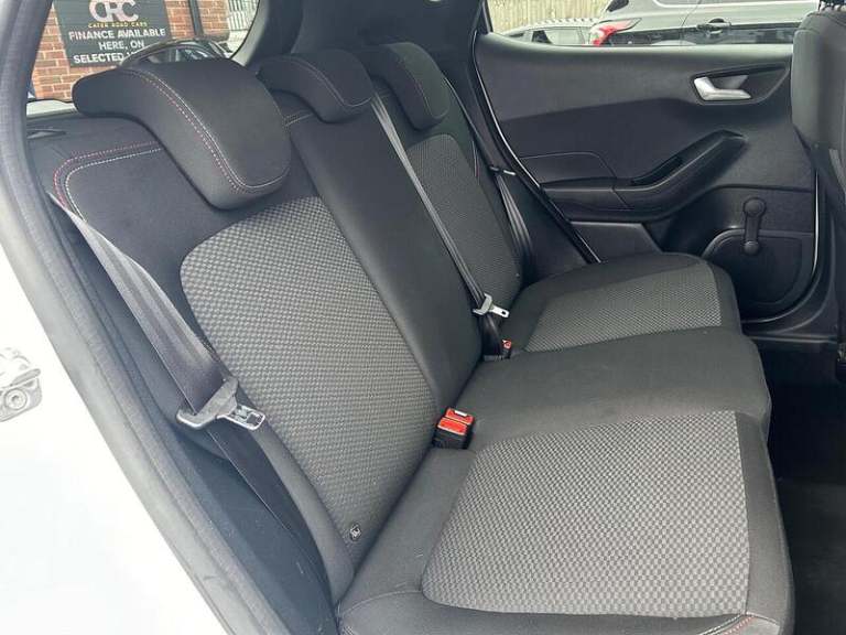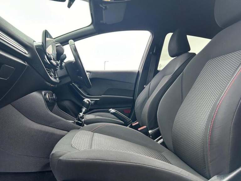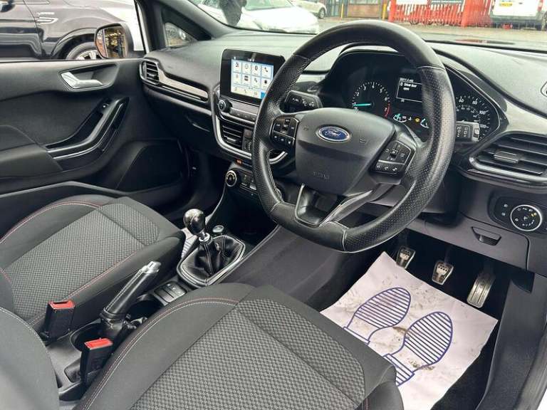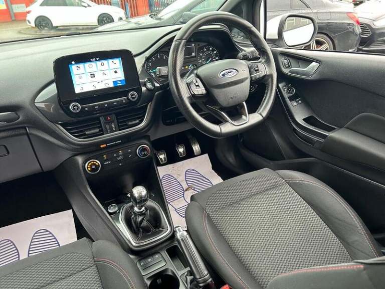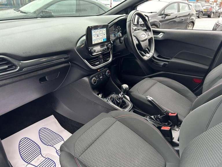 Ford DAB Radio with Ford SYNC3 - Apple Car Play and Android Auto, Trip Computer, Tyre Pressure Monitoring System - TPMS, 17in Alloy Wheels - ST-Line 5-Spoke - Rock Metallic, Black Belt Line Finisher, Body Coloured Electrically Operated Door Mirrors with Integrated Side Indicators, Door Handles - Body Colour, Electrically-Operated Front Windows with One Touch Drivers, Front Bumper - Unique ST-Line, Quickclear Heated Windscreen, Rear Bumper - Unique ST-Line, Rear Spoiler - Body Colour - Large, ST Line Front Scuff Plates, ST-Line Side Skirt Body Mouldings - Body Colour, Tyre Repair Kit, Unique ST-Line Upper Grille and Full Bodystyling Kit with ST-Line Wing Badges, Wipers - Standard with 6 Speed Interval Settings, Headlights - Automatic On-Off, Headlights - Halogen Projector with Black Bezel and Dedicated LED Daytime Running Lights, ST-Line Front Fog Lamps with Cornering Lights, Air Conditioning - Manual, Centre Console with Armrest and Illuminated Cupholders, Courtesy Light - Ambient LED Courtesy Lighting Cup Holder, Courtesy Light - Front Map Light and Rear - Overhead LED, Door Lever - Chrome Finish, Front Seats - Sports Style, Gearshift Knob - ST -Line Leather Trimmed with Aluminium Inset and Metal Grey Gaiter Stitching, Glovebox - Illuminated, Headliner - Woven, Leather-Trimmed Handbrake, Manual Drivers Seat Height Adjustment, MyKey, Overhead Console - Sunglasses Holder, Rear Fog Lamps, Rear Seat - 60-40 Split Back and Cushion, Sports Pedals, ST Floor Mats - Front and Rear, Steering Column - Rake and Reach Adjustment, Steering Wheel - ST-Line 3-Spoke Leather Trimmed Flat Bottomed, Warning Triangle Storage, Power Steering, Sports Tuned Suspension, ABS - Anti-lock Braking System, Airbags - Driver, Airbags - Front and Rear Side Curtain, Airbags - Front Passenger, Airbags - Side Curtain, Airbags - Side Impact, EBD - Electronic Brakeforce Distribution, Electronic Stability Control - ESC with Traction Control and Emergency Brake Assist - EBA, Electronic Stability Programme - ESP with Hill Start Assist, Ford Easy Fuel System, IPS - Intelligent Protection System, NCAP Pack, Remote Central Locking and Engine Immobiliser, Tailgate Wash-Wipe, Thatcham Alarm.Discover this 2018 Ford Fiesta T ST Line with exceptionally low mileage for its age, having covered just 38011 miles. This Euro 6 compliant model boasts a 1.0 litre petrol engine and comes with a 6 month warranty for your peace of mind. It also includes 12 months MOT provided on purchase, ensuring its road worthiness. Inside, you'll find manual air conditioning, automatic headlights for convenience, and the Ford DAB Radio featuring Ford SYNC3, which seamlessly integrates with both Apple CarPlay and Android Auto.This Fiesta ST Line offers impressive performance and efficiency, indicated by its 0-62mph acceleration time of just 9.0 seconds. Its fuel economy is a notable highlight, achieving up to 55 mpg, and it also benefits from low CO2 emissions, making it a more economical choice compared to similar vehicles. These combined factors demonstrate how this particular Ford Fiesta stands out from the crowd.