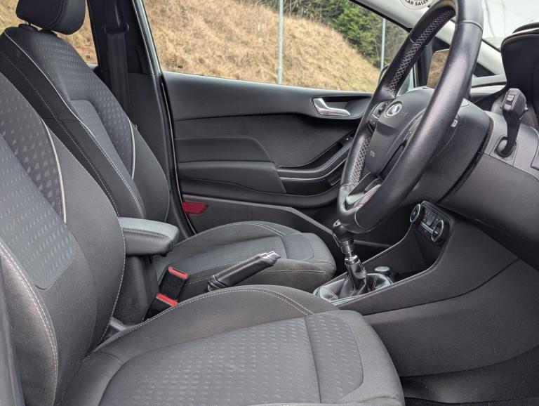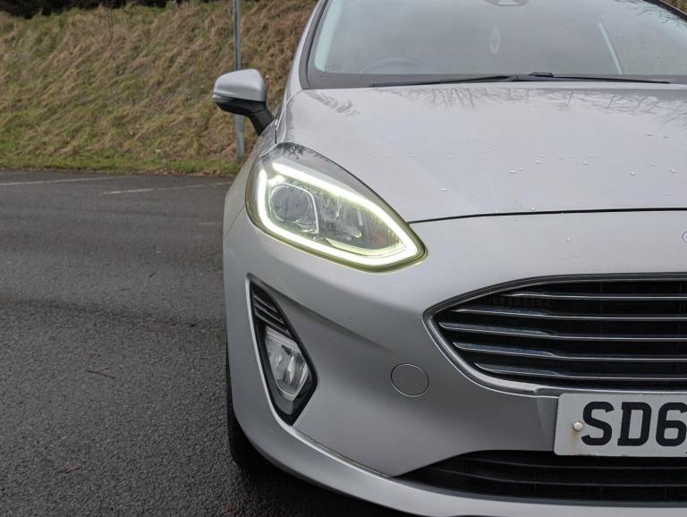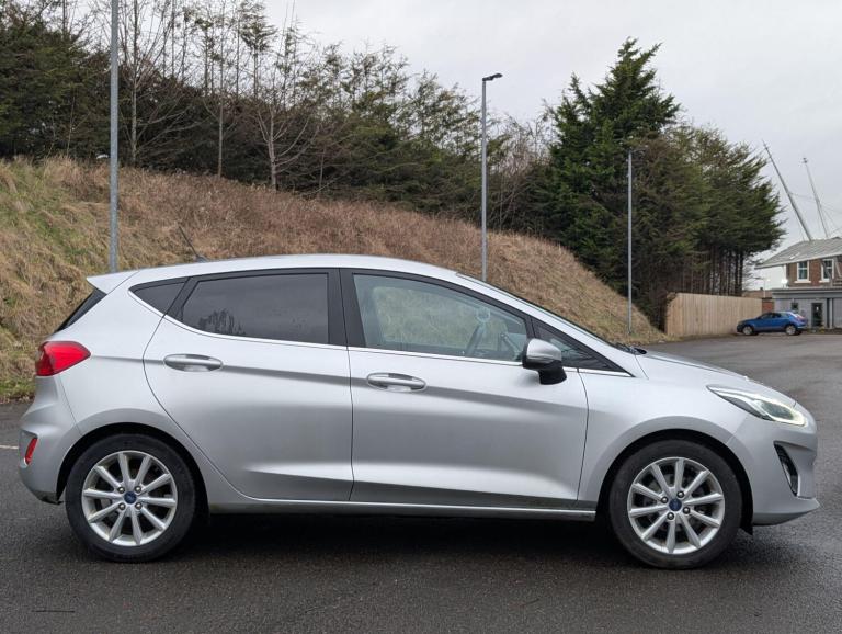 A stunning Ford Fiesta Titanium finished in classic silver. This excellent example has covered just 20,907 miles by the same owner from 8 months old. The fantastic turbo petrol engine returns an impressive 59 MPG while having plenty power around town and on the motorway. This model is the higher spec Titanium trim, with plenty tech to make life easier and safer, including satnav, carplay/android auto, parking sensors, automatic headlights, heated windscreen, lane assist, cruise control & limiter, and more. The Fiesta received the maximum 5 star safety rating from Euro NCAP, ensuring you and your family can travel safely and in comfort. Comfortable, stylish, practical, reliable, and economical, the Fiesta is Britain's most popular car - and with good reason! Comes with 2 keys and spare wheel.Our partnership with Momentum Warranties and the RAC ensure you will be kept on the road with 6 months comprehensive warranty and breakdown cover included free of charge, which can be extended up to two years. All our cars are prepared to the highest standard possible. We do this by providing you with minimum 6 months MOT, a fresh service, any necessary repairs, and we carry out a 60 point check before any car leaves the showroom! - Assuring you will drive away happy with the best buying experience possible. We are a friendly, family owned dealership and workshop who will be happy to answer any of your questions. So reserve your dream car today by phone, email, through our website, or in person! Please ask if you need any more information or a walk-around video.