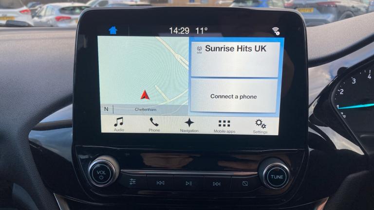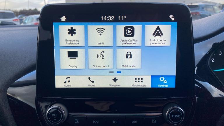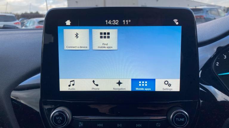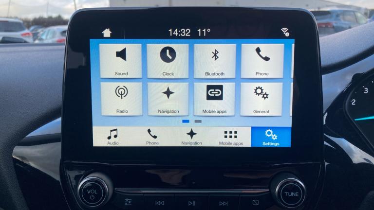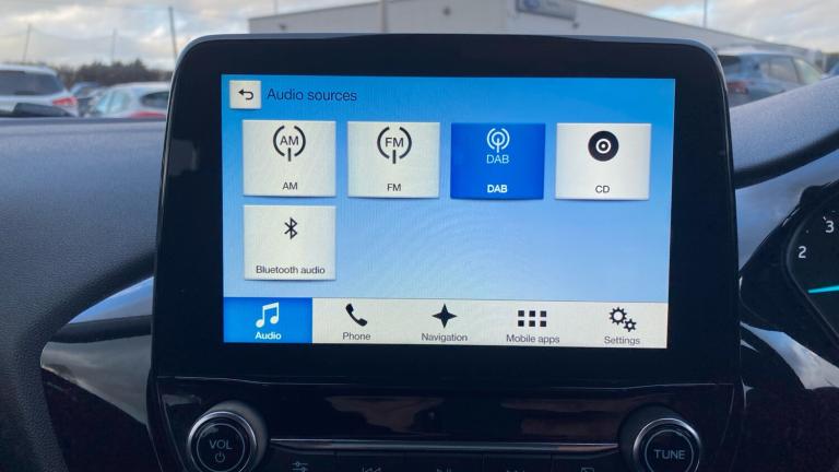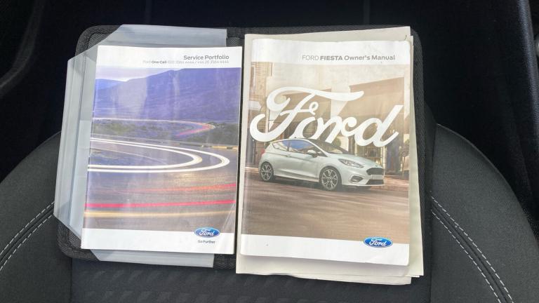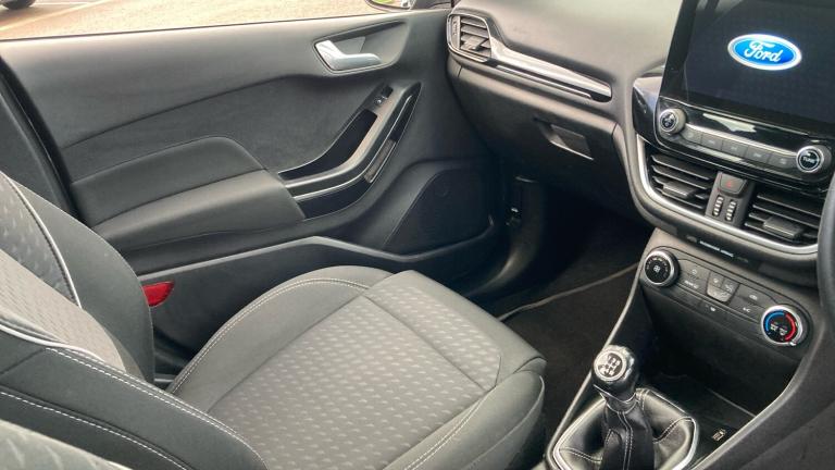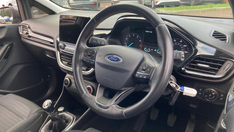 .Boot carpet, Quickclear heated windscreen, Electronic stability control with hill start assist, Bluetooth system, Electric power steering, Ford easy fuel, Trip computer, Body colour electric adjustable heated door mirrors with integral indicators, DAB Digital radio, Body colour rear spoiler, Halogen projector headlamps with LED daytime running lights, Manual air conditioning, 3 spoke leather trimmed steering wheel with audio control, Footwell illumination, NCAP Pack - Fiesta, Driver and passenger airbags, Rear centre head restraint, Remote central locking & engine immobiliser