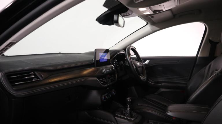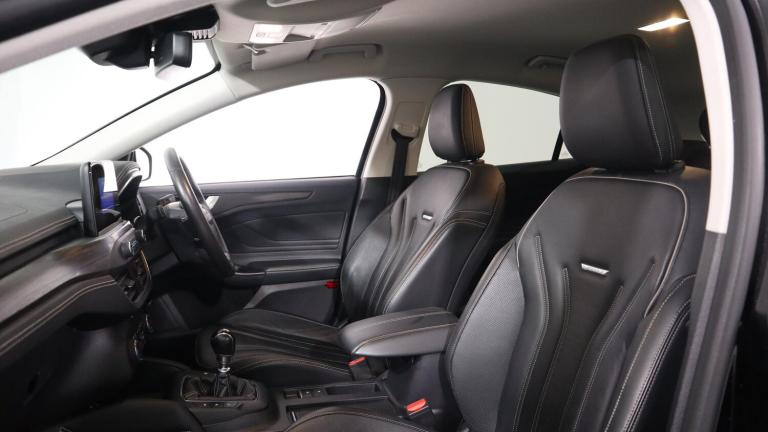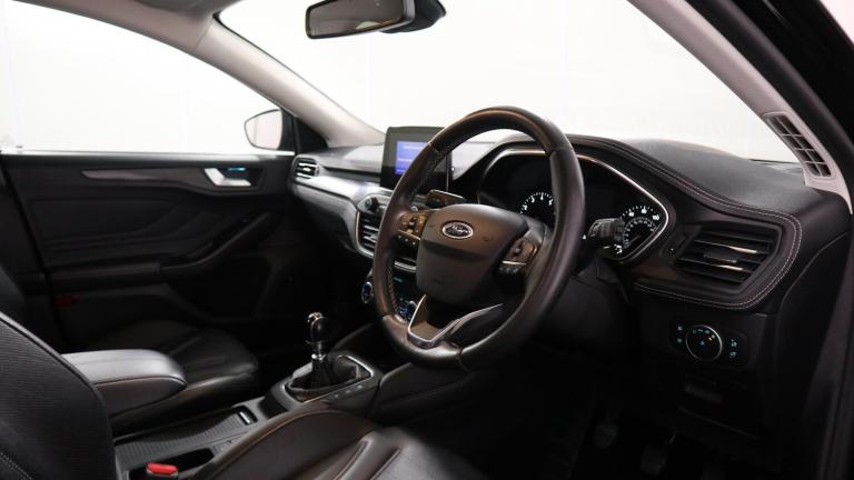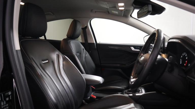 .This 2018 Ford Focus T Vignale offers a refined driving experience with its premium Vignale trim. Powered by an efficient 1.0 litre petrol engine, this Euro 6 compliant model boasts low CO2 emissions, making it a considerate choice. You'll appreciate the convenience of keyless entry, allowing you to unlock the vehicle without reaching for your keys. The Focus T Vignale also enhances comfort and practicality with a heated steering wheel and heated front seats, perfect for those colder mornings. Navigating tight spaces is made easier thanks to the rear wide view camera, providing a clear picture of your surroundings. With an acceleration of 0 to 62 miles per hour in just 10.0 seconds, this Focus T Vignale demonstrates a responsive performance that sets it apart from other vehicles in its class..4'' TFT coloured cluster screen, Digital clock, Easy fuel capless refuelling system, Eco mode, Ford SYNC 3 Navigation with DAB radio, 8'' colour touch screen, voice Control ,app Link, Apple car play/Android auto, Front and rear parking sensors, Head up Display, Lane keeping aid with lane departure warning, PAS, Rear wide view camera, Selectable drive mode, Trip computer, 2 USB ports, Aux input, B&O Audio system with 360 degree sound, 10 speakers, 675 watts of total amplifier power and digital sound processor, 'Quickclear' heated windscreen/heated washer jets, Auto dimming rear view mirror, Auto headlamps (on/off), Automatic rain sensing wipers, Body colour large rear spoiler, Body coloured bumpers, Body coloured door handles, Body coloured electrically operated and heated door mirrors with side indicators, Door edge protectors, Electrically operated front and rear windows with one touch opening and closing, Front variable intermittent wipers with electric wash, Heated rear window, LED daytime running lamp, LED front fog lamps with cornering function, LED Headlights, LED rear lamps, Polished twin tailpipe, Power folding door mirrors with puddle lights, Rear privacy glass, Tailgate wash/wipe, Upper grille with chrome surround and horizontal bars, Vignale front grille and body styling, 6 way power adjustable driver seat, 60/40 split back and cushion rear seats with 2 height adjustable headrests, Alloy finish pedals, Ambient LED multi colour interior lighting, Centre console with sliding front armrest, Dual zone electronic air temperature control, Front/rear floor mats, Heated front seats, Heated steering wheel, Height adjustable front headrests, Isofix child seat