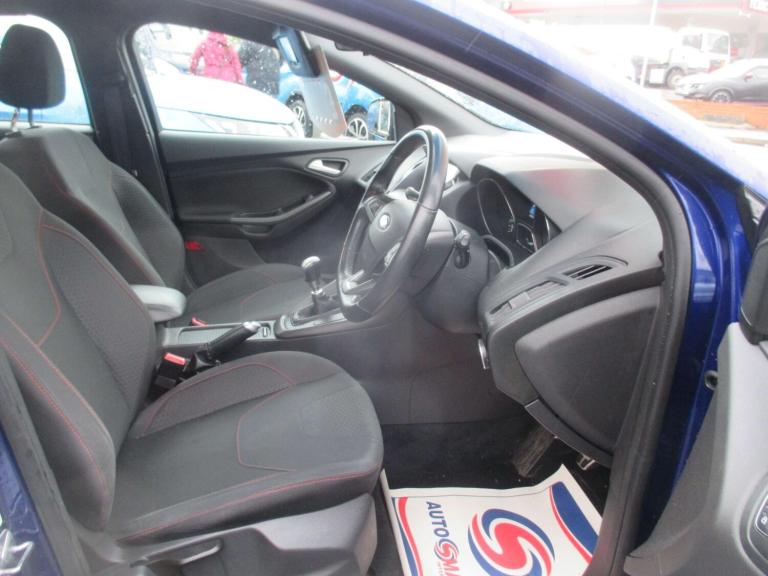 This 2018 Ford Focus ST-Line is a great find with remarkably low mileage for its age, having covered just 54,654 miles. This popular hatchback is powered by an efficient 1.0 litre petrol engine, meeting Euro 6 emissions standards. It comes equipped with manual air conditioning to keep you comfortable on every journey, and offers generous boot space for all your luggage or shopping needs.The Focus ST-Line stands out with its impressive fuel economy, achieving a notable 58 miles per gallon, which is excellent for its class. Its low CO2 emissions also contribute to its appeal. For those who enjoy a responsive drive, it accelerates from 0 to 62 miles per hour in 10.4 seconds. These highlights demonstrate how this particular Ford Focus offers a compelling blend of efficiency, practicality, and driving enjoyment compared to other vehicles.
