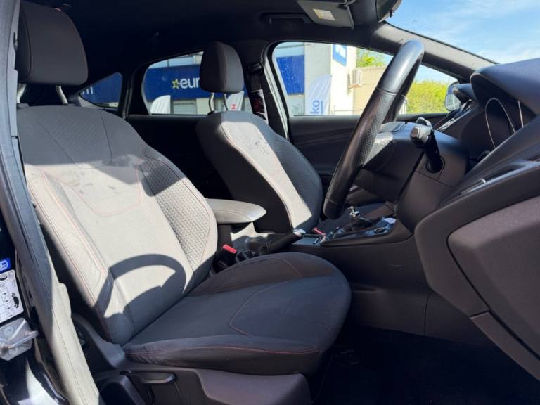 .17in Alloy Wheels - Rock Metallic Finish, Air Conditioning - Manual, Airbags - Driver and Front Passenger, Airbags - Front Side Impact, Airbags - Front and Rear Side Curtain, Alarm - Thatcham Category 1 with Volume Sensing and Perimeter, Anti-Lock Braking System - ABS with Electronic Brake Force Distribution - EBD, Black Exterior Trim Detailing including Upper Door Line and Headlamp Surround, Body Colour Large Rear Spoiler and Side Skirts, Body Coloured Front Styling Kit with Centre Aero Foil, Centre Console - Premium with Sliding Armrest - Covered Stowage Bins, Colour TFT Instrument Cluster Display, Courtesy Light - Front and Rear Passengers - Overhead Halogen and Load Compartment, Door Mirrors - Heated - Electric - Integrated Side Indicators - Body Coloured, Drivers Seat Lumbar Adjust, EPAS - Electric Power Assisted Steering, Electronic Stability Programme - ESP - with Traction Control and Emergency Brake Assist - EBA, Emergency Brake Warning - Automatic Hazard Warning Lights, Ford Easy-Fuel Capless Refuelling System, Ford Eco Mode - Driver Information System, Ford Power Starter Button, Ford SYNC3 DAB Navigation System, Front Floor Mats, Front Fog Lights, Front Seat - Drivers Manual Height and Fore-Aft Adjustment, Front Seat - Passenger Manual Fore-Aft Adjustment, Front Seats - Sports Style, Front Suspension - Independent with MacPherson Struts and Anti-Roll Bar, Gearshift Knob - Leather, Halogen Headlights with Black Surround, Headlights - Courtesy Delay, Headliner - Black Woven, Hill Start Assist, IPS - Intelligent Protection System, Keyless Start, LED Daytime Running Lights, Leather-Trimmed Handbrake, Locking Wheel Nuts, MyKey, Quickclear Heated Front Windscreen with Heated Washer Jets, Rear Bumper with Integral Body Coloured Diffuser and Honeycomb Mesh in High-Gloss Black, Rear Lights - LED, Rear Suspension - Independent Control Blade Multi-Link System and Anti-Roll Bar, Remote Central-Double Locking, ST Line Stainless Steel Scuff Plates, SYNC3 with 8in Touchscreen DAB Audio System, Seats - ISOFIX Mounting Provision for Child Seats, Spare Wheel - Mini Steel, Sports Style Pedals - Gear Knob and Steering Wheel, Steering Column - Rake and Reach Adjustment, Steering Wheel - 3-spoke Flat Bottom - Leather Trimmed, Suspension - Sports, TVC - Torque Vectoring Control, Trip Computer, Tyre Pressure Monitoring System, Upper and Lower Grille - High Gloss Black Honeycomb Design, Windows - Electrically Operated Front with One Touch Lowering on Drivers Side, Wipers