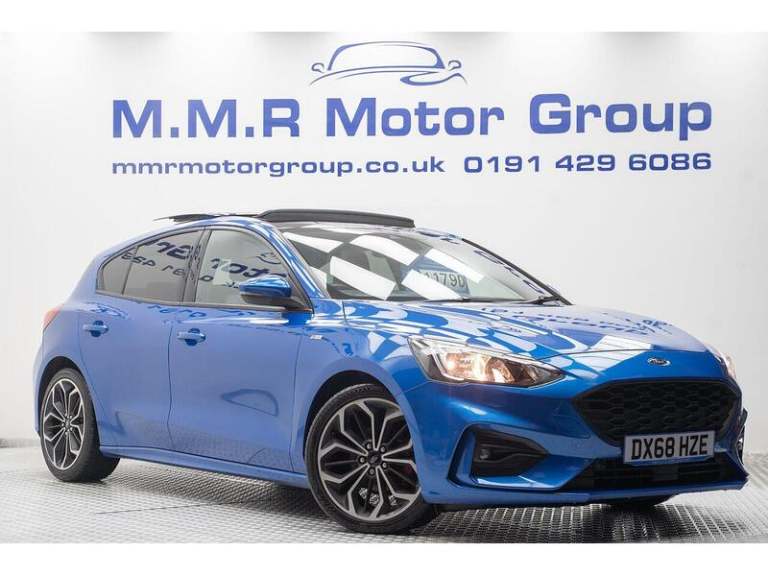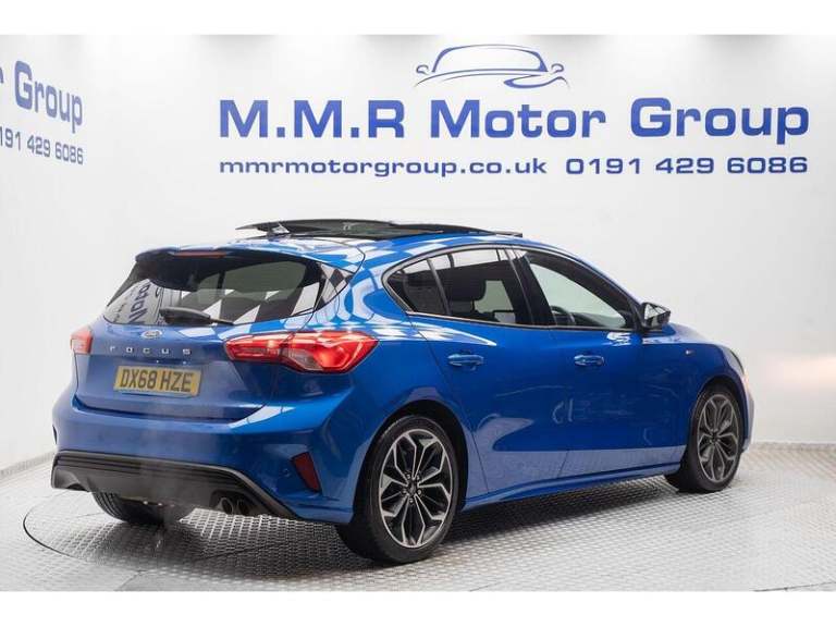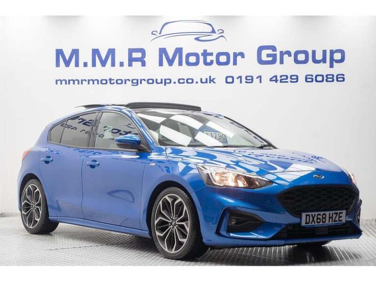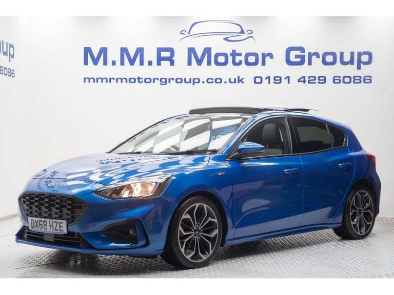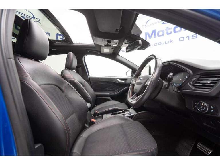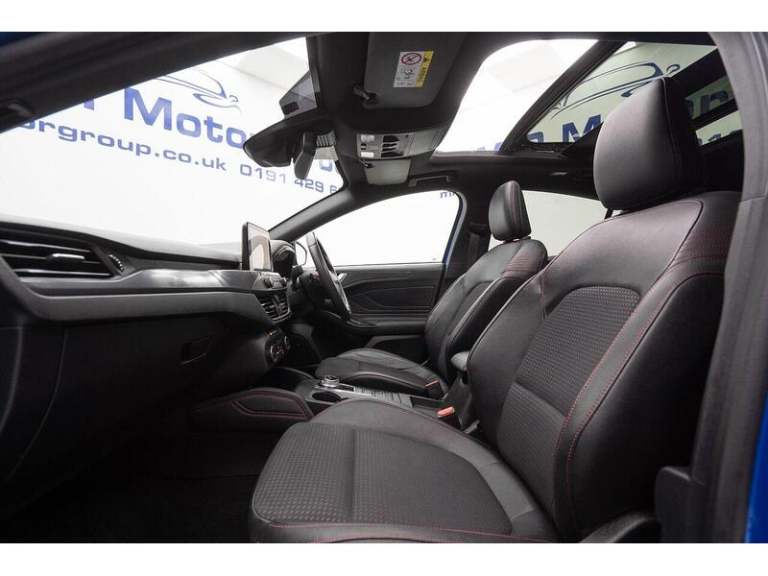 Panoramic Roof - Openable,Headlights - LED,B&O PLAY Premium Audio System,Adaptive Front Lighting System,2nd Load Floor, 18in Alloy Wheels - 5x2 Spoke - ST-Line Matt Black Machined Black, 4.2in TFT Instrument Cluster Screen, 6-Way Power Adjustment Driver Seat, 8in Touchscreen Colour Display, Airbags - Driver and Front Passenger, Airbags - Front and Rear Side Curtain, Airbags - Front Side Impact, Alloy Finish Pedals, Anti-Lock Braking System - ABS with Electronic Brake Force Distribution - EBD, Automatic Dimming Rear View Mirror, Body Colour Bumpers, Centre Console with Armrest, Courtesy Light - Front and Rear Passengers - Overhead Halogen and Load Compartment, Cruise Control with Speed Limiter, DEATC - Dual-Zone Electronic Automatic Temperature Control, Door Handles - Body Colour, Drivers Seat Lumbar Adjust, Electric Parking Brake, Emergency Brake Warning, Enhanced Electronic Stability Control - ESC with Traction Control - Emergency Brake Assist - EBA - Hill Start Assist - HSA, EPAS - Electric Power Assisted Steering, Ford Easy Fuel - Capless Refuelling System, Ford Eco Mode - Driver Information System, Ford SYNC3 DAB Navigation System, FordPass Connect, Front and Rear Floor Mats with Red Stitching, Front and Rear Seatbelt Minder, Front Passenger Airbag Deactivation Switch, Front Seat - Drivers Manual Height and Fore-Aft Adjustment, Front Seat - Passengers Manual Fore-Aft Adjustment, Front Seats - Sports Style, Front Suspension - Independent with MacPherson Struts and Anti-Roll Bar, Headlights - Halogen, Headliner - Black Woven, Heated Front Seats, Intelligent Speed Assistance, IPS - Intelligent Protection System, Lane Keeping Aid with Lane Departure Warning, Leather-Trimmed Handbrake, LED Daytime Running Lights, LED Front Fog Lights with Cornering Function, Locking Wheel Nuts, MyKey, Paddle Shift, Parking Sensor - Front and Rear, Passenger Seat Manual Height and Lumbar Adjust, Polished Twin Tailpipe, Post Collision Braking, Power Folding Door Mirrors with Puddle Lights, Pre-Collision Assist with Autonomous Emergency Braking and Pedestrian-Cyclist Detection, Pre-Collision Assist with Pedestrian Detection, Quickclear Heated Windscreen, Rain Sensitive Windshield Wipers, Rear Centre Headrest, Rear Privacy Glass, Rear Spoiler - Body Colour - Large, Red Brake Calipers, Remote Central Locking and Engine Immobiliser, Rotary Gear Shift Dial, Seats - ISOFIX Mounting Provision for Child Seats, Selectable Drive Mode, Soft Console Knee Pads with Red Stitching, Spare Wheel - Mini Steel, Sports Tuned Suspension, ST Line Stainless Steel Scuff Plates, Steering Column - Rake and Reach Adjustment, Steering Wheel - 3-Spoke Flat Bottom - Leather Trimmed with Red Stitching, Thatcham Category 1 Alarm, Trip Computer, Tyre Pressure Monitoring System, Unique ST-Line Upper and Lower Grille and Full Bodystyling Kit and ST-Line Wing Badges, Windows - Electrically Operated Front and Rear with One Touch Opening and Closing, Wipers - Standard with 6 Speed Interval Settings.This 2018 Ford Focus ST-Line X presents a compelling proposition with its remarkably low mileage of just 48,670 miles for its age, coupled with a clear vehicle history check and a full 12 months MOT provided on purchase. This Euro 6 compliant 1.0L petrol model offers a refined driving experience, enhanced by desirable features such as an openable panoramic roof, advanced LED headlights with an Adaptive Front Lighting System, and a premium B&O PLAY audio system. The inclusion of a 2nd load floor further adds to its practicality.The ST-Line X trim level signifies a sportier aesthetic and enhanced specification, setting this Focus apart from other models. The combination of the panoramic roof, LED lighting, and the superior sound system creates a more enjoyable and sophisticated environment for both driver and passengers. This vehicle represents a well maintained and feature rich option for those seeking a capable and stylish hatchback.Please call our experienced sales team on 0191 4296086 for any additional specification queries, an in depth appraisal/ Video call or maybe we can help fund your new car. All our vehicles are prepared to the highest standards by our expert technicians in our fully equipped preparation centre as we're an AA approved dealer. Every car must go through a strict and thorough inspection, Items that require attention, mechanically or cosmetically are addressed prior to delivery. We offer a wide range of Finance and Warranty packages as well as fantastic trade rates for allow wheel refurbs/colour changes, window tinting and much more. Vehicles are supplied with pre delivery service, 12 months MOT, 12 Months AA breakdown cover and 6 months Auto Protect warranty that can be extended up to 24 month. All vehicles are HPI clear a full report can be supplied at point of sale. Home Delivery can be arranged throughout the UK. We welcome part exchanges and can tailor finance packages to suit you. See our latest stock on [Website URL removed]