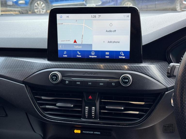 Discover this 2018 Ford Focus T ST-Line X, a well presented example ready for its next owner. This model boasts a responsive 1.0 litre petrol engine and meets Euro 6 emissions standards. Inside, you'll find the advanced Ford SYNC3 DAB Navigation System, complete with Android Auto and Apple CarPlay for seamless smartphone integration, alongside Bluetooth connectivity. Comfort is further enhanced by DEATC Dual-Zone Electronic Automatic Temperature Control, ensuring a pleasant cabin environment for all occupants.This Focus ST-Line X also offers practical convenience with front and rear parking sensors, including parking assistance, making manoeuvring effortless. For those chilly mornings, enjoy the luxury of heated front seats. With a highlight fuel economy of 46 mpg, this vehicle offers an economical driving experience. Its impressive boot space provides ample room for all your needs, and its low CO2 emissions demonstrate its efficiency compared to similar vehicles.