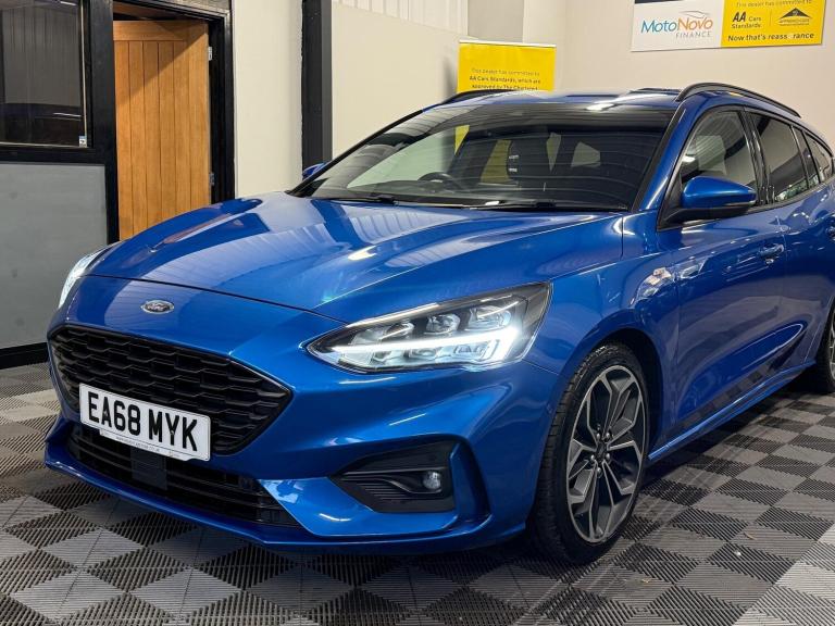 2018 Ford Focus 2.0 EcoBlue ST-Line X Auto Euro 6 (s/s) 5dr, 49,886 miles. Supplied with full V5 and full service history, mostly Ford main dealer.Recent service and MOT recently completed. Optional extras include LED headlights, exclusive Desert Island Blue paint, hands-free tailgate, Convenience Pack, heated steering wheel, and wireless charging pad.The ST-Line X specification adds half-leather sports seats with red stitching, flat-bottom leather steering wheel, 18-inch alloy wheels, sport suspension, rear privacy glass, keyless entry and start, dual-zone climate control, SYNC 3 infotainment with touchscreen navigation, Apple CarPlay and Android Auto, front and rear parking sensors with reversing camera, ambient interior lighting, automatic headlights and wipers, and cruise control with speed limiter.Please see the photos for the full condition. A 3-month comprehensive warranty is included, with the option to extend for up to two years. Part exchange is welcome for any value, and our Buying Department can provide prompt valuations. Nationwide delivery is available at a cost upon request, and you can reserve this vehicle today with a 250 fully refundable deposit. We have over 150 vehicles in stock across our two sites. Established in 2021, we pride ourselves on our excellent reviews and customer service. All our retail vehicles are fully health-checked and prepared to the highest standard. As an AA Approved Dealer with Trading Standards endorsement, you can trust us to deliver quality and reliability. Every car comes with 12 months free AA roadside breakdown and recovery, regardless of age, value, or mileage. We are proudly recognised on the Trading Standards website as an approved dealer and are regulated and authorised by the Financial Conduct Authority under FRN: 1014981.