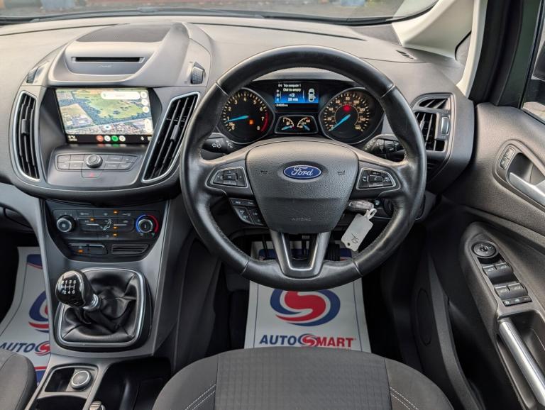 * 6 SEATS * SYNC3 NAVIGATION * 2 Former Keepers From New, Only 64,000 Miles, Full Service History, Just Serviced in January 2026, Serviced at 18k, 34k, 57k & 64k Miles, MOTed Until January 2027 with No Advisories, Fully HPI Checked & Clear :: 1.0 Turbo Petrol EcoBoost Engine, 125 BHP, 6-Speed Manual Gearbox, Ford Eco Mode :: ECONOMICALLY; Averages 47.9 MPG! 53.3 MPG on Motorways! :: 5 Door MPV, Twin Sliding Rear Doors, 7 Seats :: Magnetic Grey Metallic Paintwork with Chrome Exterior Trim, Daytime Running Lights, Dark Charcoal Tetra Cloth Upholstery, Front Sports Style Seats, Black Gloss Interior Trim :: Ford SYNC3 Touch-Screen Infotainment System, Satellite Navigation, Rear Parking Sensors, 5x2 Spoke Alloy Wheels, Cruise Control, Air Conditioning, Voice Recognition, Bluetooth Phone Connection & Music Streaming, Sony MP3 CD Player, DAB Digital Radio, All Electric Windows, Electric Heated Mirrors, Remote Central Locking, Front Centre Armrest, Multi-Functional Steering Wheel, Quickclear Front & Rear Screens, Chrome 'Ford' Kickplates, Traction Control, Isofix Preparation, Trip Computer, Tyre Pressure Monitoring System, Exterior Temperature Gauge, Power Assisted Steering, Front Foglamps, Cupholders, Electric Power Assisted Steering, IPS Intelligent Protection System :: Cost over £26,000 when new in 2018! A well-maintained, economical 6-seater Grand C-Max in the best colour!