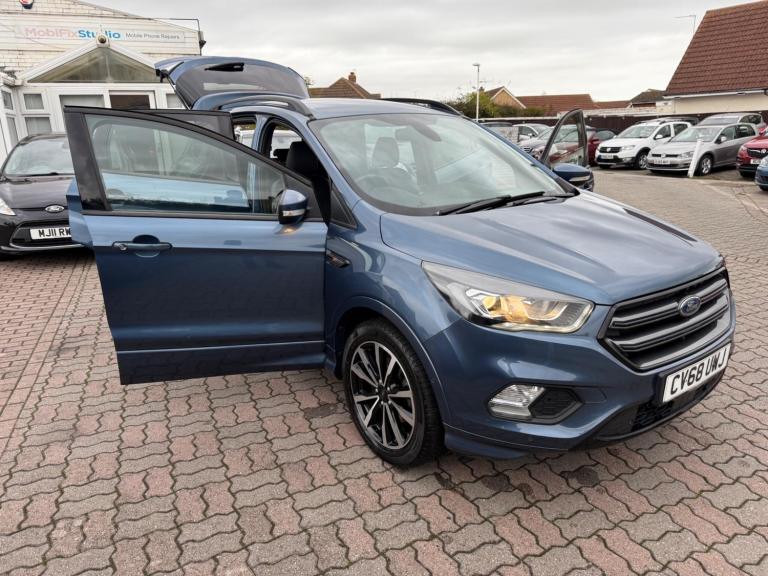 ONE FORMER KEEPER, NEW TIMING BELT AND WATER PUMP, MEW CLUTCH AND FLYWHEEL, FULL SERVICE HISTORY, 6 MONTHS WARRANTY, MOT TILL 24/09/2026, Experian clear, 2 keys, LAST SERVICE ON 19/09/2025 on (99469 MILES), all prev MOTs avail, we are located at 1-9 WALTON ROAD FRINTON ON SEA ESSEX CO13 0AA, PART EXCHANGE WELCOME, FINANCE AVAILABLE,Boasting an MOT valid until September 2026 and a full service history, this 2018 Ford Kuga TDCi ST-Line presents a compelling proposition. Powered by a 1.5L Euro 6 diesel engine, this ST-Line trim model offers a robust driving experience. Provenance is further assured with a clear Experian vehicle history check and a recent service completed on 2025-09-18 at 99469 miles. Notable features include Enhanced Active Park Assist with front and rear sensors, a Ford DAB Navigation System with Ford SYNC3 and Bluetooth, automatic halogen headlights with LED daytime running lights, and DEATC dual-zone electronic automatic temperature control for ultimate comfort. A 6-month warranty provides additional peace of mind.This Ford Kuga stands out with its low CO2 emissions and favourable low insurance group, indicating it is more economical to run than many similar vehicles. The combination of advanced parking assistance, integrated navigation, and automatic lighting systems enhances both convenience and safety. The dual-zone climate control ensures a comfortable cabin environment for all occupants, making this Kuga a practical and well-equipped choice for everyday driving.