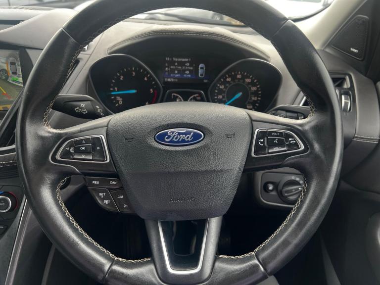 Boasting a full service history, this 2018 Ford Kuga TDCi Vignale offers excellent peace of mind. This stylish SUV is equipped with a powerful yet efficient 2.0 litre diesel engine, meeting Euro 6 emissions standards. The Vignale trim level ensures a premium experience, and with an MOT valid until May 2026, this vehicle is ready for the road. A 3 month warranty is also included for your added confidence.This Ford Kuga stands out with its low CO2 emissions, indicating a more environmentally conscious and potentially more economical driving experience compared to similar vehicles. The combination of its comprehensive service record, long MOT, and the desirable Vignale specification makes this Kuga a compelling choice for those seeking a well maintained and feature rich diesel SUV.