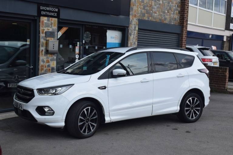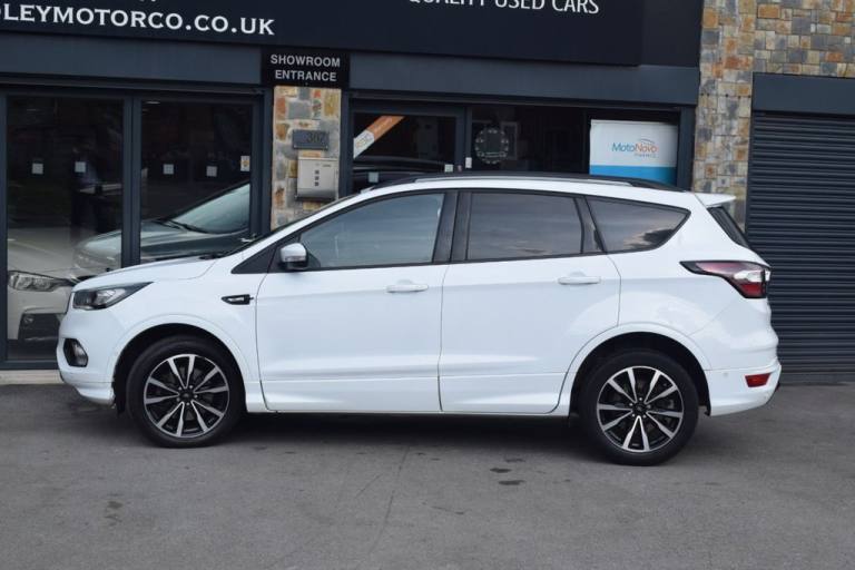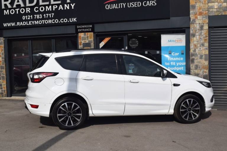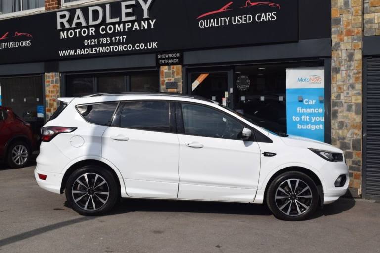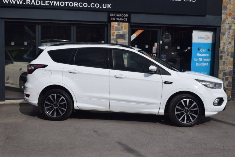 We at Radley Motor Company are proud to offer you this 2018 Ford Kuga 2.0 TDCi EcoBlue ST-Line SUV 5dr Diesel Manual Euro 6 (s/s) (150ps), having covered just 49,000 miles with a Full Service History. This vehicle is ULEZ compliant, offering both performance and efficiency in a stylish SUV package. RAC Platinum Warranty and 12 Months RAC Rescue & Recovery included. Warranty upgrade options available for 6, 12, 24 or 36 months. Finished in Platinum White with ST-Line styling pack, this Kuga blends sporty looks with practicality and comfort, making it an excellent family SUV. Key Features & Options: Platinum White metallic paint 19" ST-Line Alloy Wheels - Black, 5x2 Spoke Design ST-Line Styling Pack with Full Body Kit & Large Rear Spoiler Rear Privacy Glass Multi-Colour Ambient Interior Lighting Dual-Zone Electronic Automatic Climate Control (DEATC) Cruise Control with Active Speed Limiter Ford SYNC3 Premium DAB Navigation with Bluetooth, Voice Control & USB Quickclear Heated Windscreen with Heated Washer Jets Front & Rear Floor Mats with Red Stitching Sports Suspension for Dynamic Handling Leather Steering Wheel & Gear Knob with Red Stitching Electric Parking Brake Keyless Start - Ford Power Button Power-Folding Door Mirrors with Puddle Lights Enhanced Active Park Assist Rear Parking Sensors 60/40 Split-Folding Rear Seats with Multi-Step Recline Function Isofix Child Seat Mounting Points LED Daytime Running Lights & Halogen Headlights Thatcham Category 1 Alarm & Engine Immobiliser Intelligent Protection System (IPS) with Multiple Airbags Tyre Pressure Monitoring System Mini Spare Wheel This low-mileage Ford Kuga ST-Line is a fantastic example, combining sporty design, practicality, and impressive efficiency. Feel free to visit our showroom or book a test drive. Give us a call today - we also offer virtual walk-arounds for your convenience. Finance options are available, and part exchange is welcome..Multi-Colour Ambient Interior Lighting, Premium Ford DAB Navigation System with Ford SYNC3, Platinum White, Driver Assistance Pack, ST-Line Style Pack, Large Rear Spoiler, Rear Privacy Glass, 19in Alloy Wheels - 5x2 Spoke - Black, 12V Power Socket - Load Compartment, 18in Alloy Wheels - 5x2 Spoke, 6-Way Manual Passenger Seat with Lumbar Adjustment, Airbags - Driver and Front Passenger, Airbags - Drivers Knee, Airbags - Front Side Impact, Airbags - Front and Rear Side Curtain, Alloy Foot Pedals, Anti-Lock Braking System - ABS with Electronic Stability Control - ESC, Armrest - Folding Centre - Rear, Audible Text Messaging - Voice Control and USB Connectivity, Black Roof Rails, Centre Console, Child Locks - Manual on Rear Doors, Courtesy Lights - Front and Rear, Cruise Control with Active Speed Limiter, DEATC - Dual-Zone Electronic Automatic Temperature Control, Dark Headliner, Door Lever - Chrome Finish, EBA - Emergency Brake Assist, EPAS - Electric Power Assisted Steering, ESP - Electronic Stability Programme, Electric Parking Brake, Engine Immobiliser, Enhanced Active Park Assist, Fog Lights - Front, Ford Power Starter Button, Ford SYNC3 DAB Navigation System, Front Seat - Drivers Manual Height - Fore-Aft and Recline Adjustment, Front Seat - Passenger Manual Height - Fore-Aft and Seatback Angle Adjustment, Front Seats - Seat-Back Map Pockets, Front Suspension - Independent with MacPherson Struts and Anti-Roll Bar, Front and Rear Floor Mats with Red Stitching, Full Body Styling Kit, Headlights - Halogen, IPS - Intelligent Protection System, LED Daytime Running Lights, Load Compartment Carpet, Locking Wheel Nuts, Mini Spare Wheel - 17in Steel, MyKey, Power Folding Door Mirrors with Puddle Lights, Quickclear Heated Front Windscreen with Heated Washer Jets, Rain Sensitive Windshield Wipers, Rear Parking Sensors, Rear Seat - 60-40 Split Folding Seat Back and Cushion with Multi-Step Recline Function, Rear Seats - 2-Way Head Restraint Up-Down, Rear Suspension - Independent Control Blade Multi-Link System and Anti-Roll Bar, Remote Central-Double Locking, Scuff Plates - Front, Seats - Drivers with Manual Lumbar Support Adjustment, Seats - ISOFIX Mounting Provision for Child Seats - Outer Seats Only, Sports Suspension, Steering Column - Rake and Reach Adjustment, Steering Wheel and Gear Knob - Leather with Red Stitching, Thatcham Category 1 Alarm, Tie-Down Hooks, Tonneau Cover, Twin Exhausts and Rear Diffuser, Tyre Pressure Monitoring System, Windows - Electrically