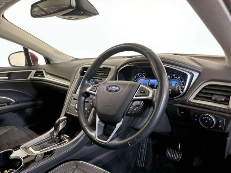 This 2018 Ford Mondeo TDCi Vignale presents an exceptional opportunity with its remarkably low mileage of just 31,550 miles. As a Euro 6 compliant model, it features a powerful 2.0 litre diesel engine, offering a blend of performance and efficiency. The Vignale trim level signifies a premium experience, enhanced by features such as Adaptive Cruise Control with Collision Mitigation, ensuring a more relaxed and safer drive. You'll also benefit from the advanced SYNC 3 system, complete with an 8 inch colour touchscreen, Bluetooth connectivity, voice control, and USB port, alongside Ford LED Adaptive Headlamps for superior visibility and a Rear View Camera for effortless parking. The Mondeo TDCi Vignale excels in practicality and comfort, boasting a generous boot space perfect for all your needs. Its impressive acceleration, reaching 0-62mph in just 8.6 seconds, demonstrates its dynamic capability. The inclusion of the Winter Pack, featuring heated seats and a heated steering wheel, ensures comfort even on the coldest days, setting this vehicle apart from others in its class. This combination of low mileage, premium features, and strong performance makes this Ford Mondeo a truly desirable choice.For peace of mind this vehicle has completed a multi point AA inspection. Competitive finance is also available.We are open 7 days a week and have more than 1500 cars to choose from.All our Euro 4 Petrol and Euro 6 Diesel vehicles meet the ULEZ standard.Vehicle specification can be found below. From time to time vehicles have manufacturer recalls notified. Please read our recall policy on our website for further information. SYNC 3 with 8in Colour Touchscreen with Bluetooth - Voice Control - USB Connectivity Port and Emergency Assistance, Sony DAB Audio with Touchscreen Navigation System and 12 Speakers, Adaptive Cruise Control with Collision Mitigation, Cruise Control with Adjustable Speed Limiter, Gear Shift Indicator, Parking Sensor - Front and Rear, Rear View Camera, Tyre Pressure Monitoring System, 19in Alloy Wheels - Exclusive Dark Tarnish, Dark Tarnish Finish to Side Window Surround, Door Handles - Body Coloured with Dark Tarnish Finish, Door Mirrors - Body Colour Housing, Door Mirrors - Power-Operated - Heated - Power-Foldable with Memory - Dip on Reverse - Electrochromatic - Driver Side Only - Side Indicators and Puddle Lights, Exhaust - Dual Chrome Finish, Fog Light Bezel - Painted High-Gloss Black with Dark Tarnish Surrounds, Ford Easy Fuel