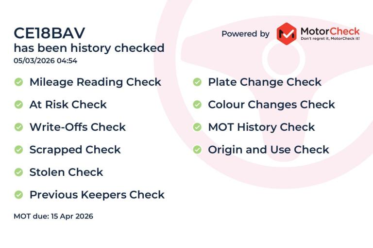 Our vehicle history check is provided for guidance only. Please check all the details with the seller before purchasing