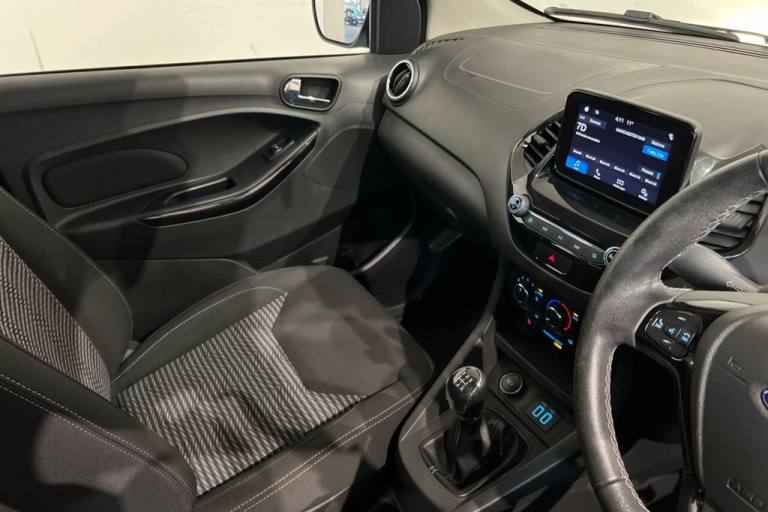 This 2019 Ford Ka+ Ti-VCT Zetec is a great find with remarkably low mileage for its age, having covered just 29,200 miles. This Euro 6 compliant 1.2 litre petrol model comes in the Zetec trim, offering a practical and enjoyable driving experience. Inside, youll find the Ford SYNC 3 DAB Radio system, complete with a 6.5 inch touchscreen that seamlessly integrates with both Android Auto and Apple CarPlay, keeping you connected on the go. For your comfort, it also features manual air conditioning to keep the cabin pleasant in all weather. The Ka+ Zetec stands out with its low CO2 emissions, making it a more environmentally conscious choice. Furthermore, its placement in a low insurance group indicates that running costs are likely to be more affordable compared to similar vehicles. These highlights, combined with its low mileage and desirable features, present a compelling package for anyone seeking an economical and well equipped compact car. Lifetime warranty available on this car, plus a £1,000 finance contribution when you part exchange. Voted UK Car Supermarket of the Year two years running, we offer 0% finance, part exchange, and lifetime warranties across our entire range. Every car is thoroughly inspected before sale and comes with a full history check, so you can buy with complete peace of mind. Buy with confidence on our best finance rates. Proud winners of the CarGurus Top-Rated Dealer 2022 and the MotoNovo Extra Mile Award. .15in Alloy Wheels - 5x2 Spoke, Airbags - Driver and Front Passenger, Airbags - Passenger Airbag Deactivation Switch, Airbags - Side Curtain, Anti-Lock Braking System ABS and Electronic Stability Control ESC with Hill Start Assist, Body Colour Bumpers, Centre Console with Two Cupholders and 12V Power Point, Chrome Air Vents, Chrome Centre Console Controls, Chrome Foglamp Surround, Chrome Upper Grille, Cruise Control, Door Handles - Body Colour, Door Handles - Chrome, Drivers Seat Height Adjust, Electric Power-assisted Steering - EPAS, Electrically Operated Door Mirrors with Side Indicators, Emergency Brake Warning, Engine Immobiliser, Ford Easy Fuel System, Ford SYNC 3 DAB Radio with 6.5in Touchscreen, Front Floor Mats, Front Fog Lamps with Day Running Lights, Front Seat - 2-way Manual Passenger Seat - Fore-Aft-Recline, Front Seat - 4-way Manual Driver Seat - Fore-Aft-Up-Down, Gearshift Knob - Soft Feel with Chrome Surround Ring, Glovebox Light, Grained Finished Instrument Panel, Handbrake - with Chrome Tip, Hazard Warning Lights, Headlights - Manual Levelling Control, High-Mounted Rear Brake Light, Illuminated Door Switch, Leather Steering Wheel with Remote Audio Controls, Load Compartment Light, Lodha Cloth - Dark Shadow-Charcoal Black, Manual Air Conditioning - A-C, Manual Childproof Locks on Rear Doors, Map Reading Lights, MyKey, Perimeter Alarm with Remote Central Locking, Rear Centre Head Restraint, Rear Fog Lamps, Rear Seat - 60-40 Split Folding Seats, Rear Window - Child Lock, Seatbelts - 3-point with Pre-tensioner, Seatbelts - Manual Height Adjustment, Seatbelts - Rear 3-point, Shadow Black, Speed Limiter, Steering Column - Rake and Reach Adjustment, Sun Visor - Driver Flip-up Vanity Mirror and Stowage Loop, Sun Visor - Passenger Flip-up Vanity Mirror, Suspension - Front Stabiliser Bar, Tailgate Remote Release, Tailgate Wash-Wipe, Tinted Glass, Trip Computer, Tyre Pressure Monitoring System - TPMS, Tyre Repair Kit, Windows - Electrically-Operated Front with One-Touch Lowering-Closing on Drivers Side, Windows - Rear Manual, Wipers - Front Variable Intermittent