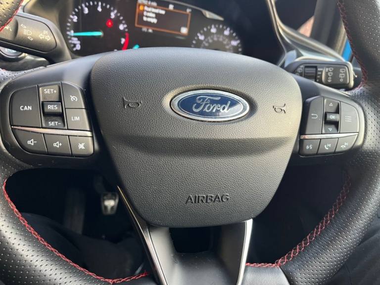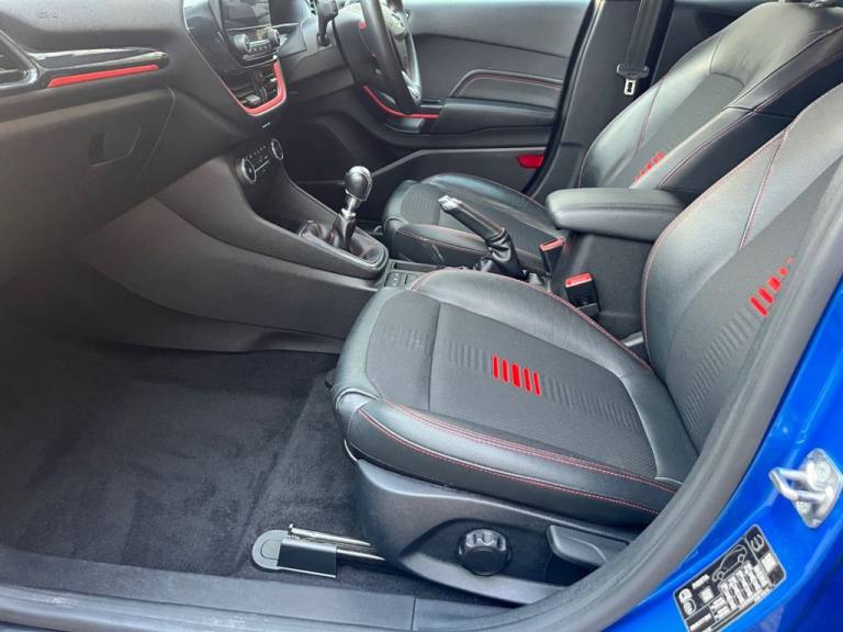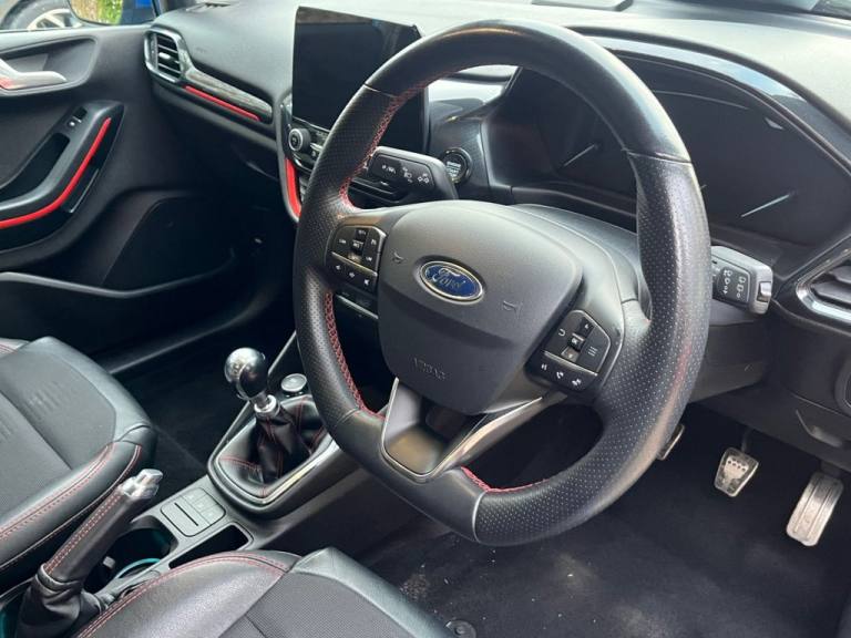 With a national parts and labour warranty, a pre sale service and an MOT until September 2026. Finished in Blue metallic, Black half leather, satellite navigation, Apple CarPlay, Android Auto, Dab digital radio, air conditioning, climate control, cruise control, keyless start, automatic headlights, high beam assist, privacy glass, power folding mirrors, heated front and rear screens, lane departure warning, Bluetooth phone preparation, Usb inputs, stop start system, Isofix child seat anchors, 17" alloy wheels, 32,000 miles from new, service history and 2 keys. Finance available on this vehicle with no deposit! NATIONWIDE DELIVERY AVAILABLE. Finance calculator and no obligation application on our website - [Website URL removed] Apply online today. Part exchange welcome and all major credit/debit cards accepted. Extended warranties available on request. We do not charge ANY admins fees for our sales, only third party finance fees are passed on, any finance arrange by ourselves will incur NO admin fees Open 7 days a week..17in Alloy Wheels - ST-Line 5-spoke - Rock Metallic, Air Conditioning - Electronic Automatic Temperature Control - EATC, Automatic Rain Sensing Wipers and Auto-Dimming Rear View Mirror, Cruise Control, Desert Island Blue, Door Mirrors - Electrically-Operated and Heated - Power-Foldable with Integrated Side Indicators - Body Colour Housings and Puddle Lights, Ford Navigation System with Ford SYNC 3 - Apple CarPlay and Android Auto and FordPass Connect - Embedded Modem, Headlights - Automatic On-Off and Highbeam, Keyless Start with Ford Power Start Button, Large Rear Spoiler - Body Colour with Centre High Mounted Stop Light, Partial Leather - ST-Line X Red Pack - Black with Red Theme, Quickclear Heated Windscreen, Rear Privacy Glass, Seats - ISOFIX Mounting Provision for Child Seats, ST-Line Front Fog Lamps with Cornering Lights, TSR - Traffic Sign Recognition