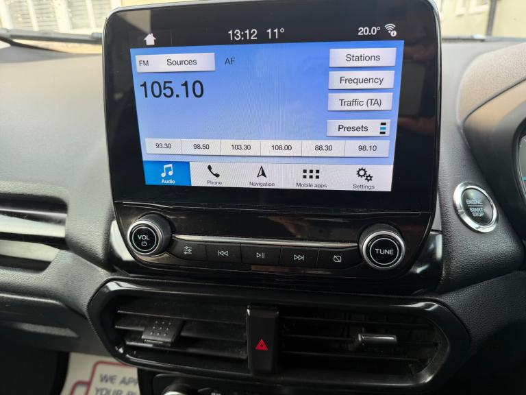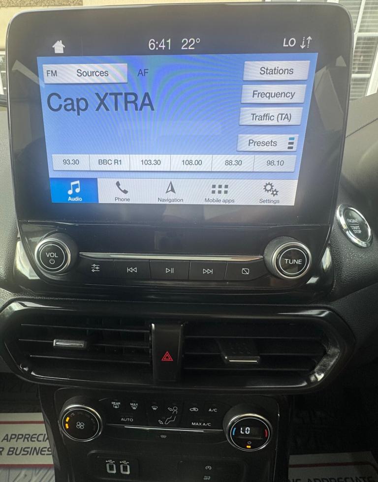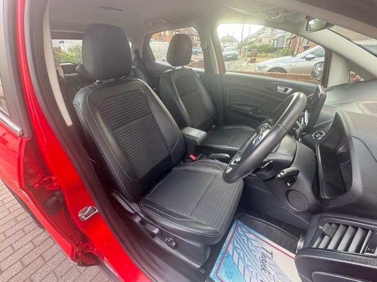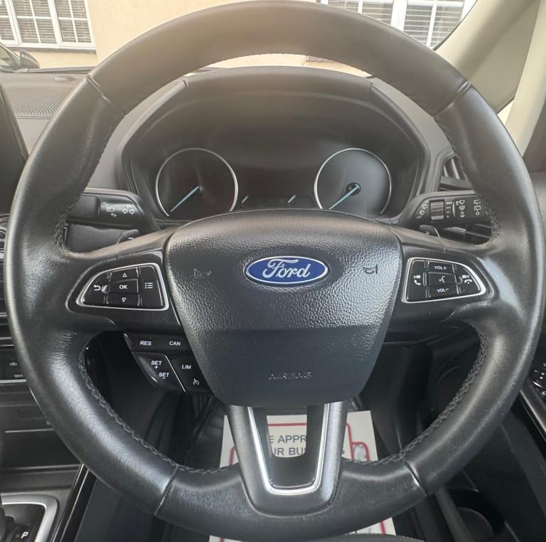 Full Service History 2 keys Come with New MOT Satellite Navigation Parking Sensors Reversing Camera Multifunction Steering Wheel Finance Available 6 Months warranty * Nationwide delivery service Part Exchange welcome VIEWING BY APPOINTMENT , Features Include: , cruise control, easy fuel capless refuelling system, pas, sync 3 nav system with dab radio, 8'' screen, voice control, emergency assistance, apple car play/android auto, 2x usb, ford pass connect, trip computer, 'quickclear' heated windscreen/heated washer jets, auto dimming rear view mirror, automatic headlights, body colour door handles, body coloured bumpers, electrically adjustable and heated door mirrors, front door threshold plates, front fog lights, front grille with chrome trim surround, headlamps with led day running lights, headlight levelling control, power foldable door mirrors with puddle lights, power front and rear windows with global opening/closing, rain sensing front wipers, rear wiper, 12v socket in front and rear, 60/40 split rear seats, 7 shade adjustable ambient lighting, centre console with sliding front armrest, cooled glovebox, courtesy lights with map reading light, driver seat height/lumbar adjust, driver, driver/passenger sunvisors and lidded vanity mirrors, eatc - electronic auto temperature control, folding grab handles, footwell ambient lighting, front head restraints, front seat back map pockets, front/rear floor mats, groove cloth/leather upholstery, illuminated glovebox, illuminated luggage compartment, isofix system on outer rear seats, leather gear knob and handbrake grip, leather steering wheel with audio controls, luggage compartment carpet, overhead console with sunglasses holder, rake adjustable rear seats, reach + rake adjustable steering column, rear headrests, steering wheel with chrome inserts, storage drawers under front seats, tie down hooks, variable boot floor, rear view camera pack - ecosport, 3x3 point rear seatbelts, abs, child locks on rear doors, curtain airbags, driver airbag, drivers knee airbag, electronic stability programme with hill launch assist, emergency brake assist, front passenger airbag deactivation, front side airbags, passenger airbag, seatbelt reminder for driver and front passenger, traction control, tyre pressure monitoring system, immobiliser, mykey system, remote central locking, thatcham 1 volume sensing alarm, tyre inflation kit, 17'' Alloys