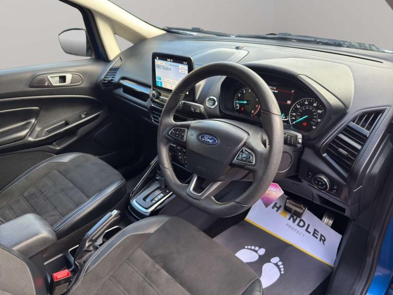 Introducing the Ford Ecosport 1.0 EcoSport ST-Line Auto 5dr, a dynamic SUV that combines style, performance, and practicality in one sleek package. With only 16088 miles on the clock and just 1 previous owner, this vehicle is in excellent condition and ready to hit the road.SPEC OF VEHICLE BUT NOT LIMITED TO:HEATED SEATSHEATED STEERING WHEELPAN ROOFBANG&OLUFSEN SURROUND SOUNDREVERSE CAMERACRIUSE CONTROLSATNAVAPPLE CARPLAYAND MUCH MORE!!Finished in a striking Blue colour, the Ford Ecosport exudes confidence and sophistication wherever it goes. The ST-Line trim adds a sporty edge, with sleek lines and bold accents that set it apart from the crowd.Whether you're navigating city streets or heading off the beaten path, the Ford Ecosport delivers a smooth and responsive driving experience. The automatic transmission makes driving a breeze, while the efficient 1.0 EcoBoost engine provides plenty of power when you need it.Don't miss your chance to own this impressive Ford Ecosport. With its low mileage, one owner history, and eye-catching Blue finish, it's sure to turn heads wherever you go. Contact us today to schedule a test drive and experience the thrill of driving a Ford Ecosport for yourself.