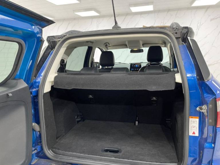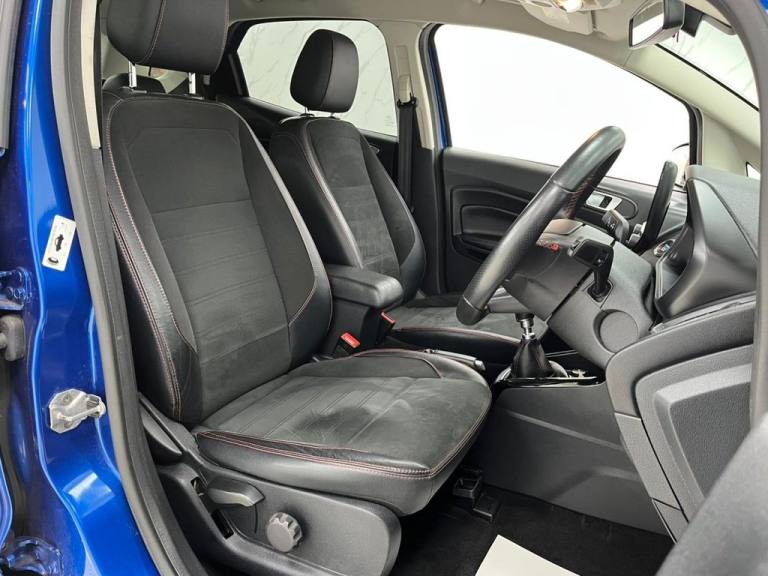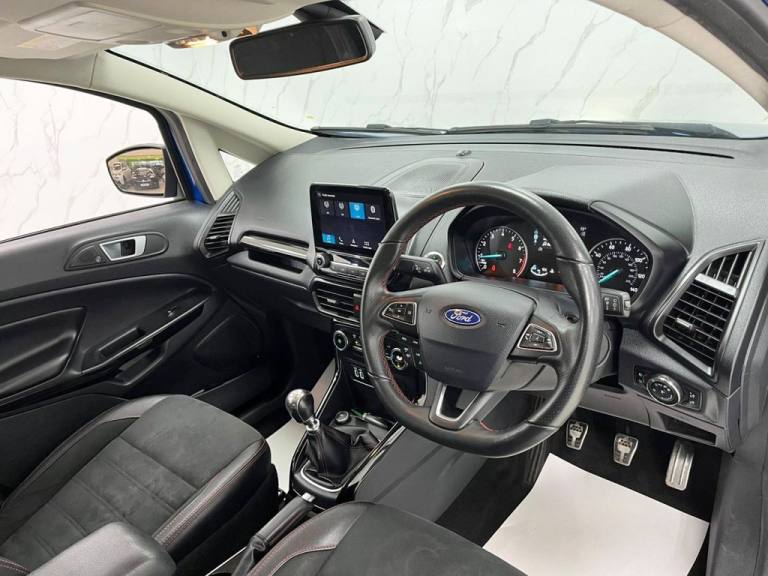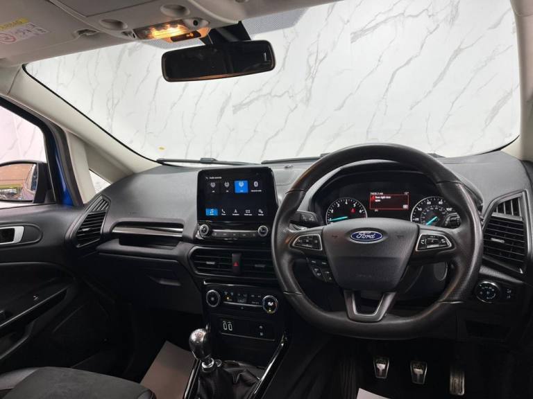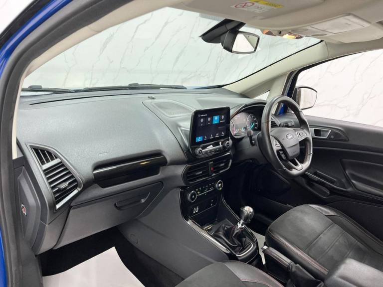 This 2019 Ford EcoSport ST-Line offers a 12 month MOT for your peace of mind. This particular model is a T ST-Line variant, powered by an efficient 1.0L Petrol Engine and meeting Euro 6 emission standards. Inside, youll find comfort and convenience with Electronic Automatic Temperature Control (EATC) and a Rear View Camera Pack for easier parking, complete with rear sensors. Stay connected and entertained with the Ford SYNC 3 Navigation system, featuring an 8in touchscreen that supports both Android Auto and Apple CarPlay. Automatic headlights ensure optimal visibility in varying conditions. The Ford EcoSport ST-Line stands out with its impressive fuel economy, achieving up to 46 mpg, which is a significant advantage over many other vehicles in its class. Furthermore, its low CO2 emissions contribute to a more environmentally conscious drive. These highlights demonstrate how this EcoSport offers a compelling blend of practicality, technology, and efficiency for your everyday journeys. Part Exchange Welcome. All Majors Cards Accepted. We Have Finance Available. A Wide Range of Warranties. We Also Offer Low Cost, Nationwide Delivery Available From £1.50 a Mile. **Every endeavour is made to ensure specifications and descriptions are correct. Due to model changes specification may vary. Phone for details. MPG figures shown are government official figures.**.Lightning Blue, Miko Dinomica Fabric-Salerno Leather-Vinyl - Ebony with Race Red Stitching, 17in Alloy Wheels - 5 Spoke Dark Tarnish, Adjustable Boot Load Floor, Air Conditioning - Electronic Automatic Temperature Control - EATC, Airbags - Curtain, Airbags - Driver and Front Passenger, Airbags - Drivers Knee, Airbags - Front Passenger De-Activation Switch, Alarm - Thatcham Category 1 with Volume Sensing and Perimeter, Ambient Lighting - Instrument Panel and Footwell, Analogue Instrument Cluster, Anti-Lock Braking System - ABS with Electronic Stability Control - ESC, Auto-Dimming Electrochromic Rear-View Mirror, Automatic Headlights, Black Headlight Bezel, Black Roof Rails, Centre Console Cup Holder with Chrome Accent, Centre Console with Covered Bin and Sliding Armrest, Child Locks, Courtesy Light - Front with Two Map Lights, Courtesy Light - Rear, Cruise Control, Door Frame Beltline - Black, Door Handles - Body Colour, Door Mirrors - Body Colour Housing, Door Mirrors - Power-Foldable Heated with Integrated Side Indicator and Puddle Lights, Driver Seat Manual Height- Fore/Aft and Seatback Angle Adjustment and Recliner, Driver Seat Manual Rotary Knob Lumbar Support Adjustment, Driver and Passengers Sun Visor with Covered Vanity Mirror and Ticket Strip on Drivers Side, Drivers Stowage Glovebox, EPAS - Electric Power Assisted Steering, ESP - Electronic Stability Programme with Hill Launch Assist, Emergency Assistance, Engine Immobiliser, Ford Easy Fuel - Capless Refuelling System, Ford SYNC 3 Navigation with 8in Touchscreen, Front Fog Lights and Turn Indication Light Bezel - Body Colour, Front Fog Lights with Combined Turn Indication Light, Front Grille Bars and Surround - Ebony Black, Front Seat - Passenger Manual - Fore-Aft and Recline Adjustment, Front Seat - Under Passenger Seat Stowage, Front Seats - 2-Way Head Restraint Up-Down, Front Seats - 3 Point Seat Belts with Load Limiter and Seatbelt Height Adjust, Front Seats - Seat-Back Map Pockets, Front Suspension - Independent with MacPherson Struts and Anti-Roll Bar, Front and Rear Bumper - Body Colour with Dark Sport Insert, Front and Rear Floor Mats with Red Stitching, Front and Rear Folding Grab Handles, Front and Rear Power Points - 12V, Full Length Overhead Console with Sunglasses Holder, Gear Shift Indicator, Gearshift Knob - Leather-Trimmed with Black Insert and Aluminium-Finish Ring and Red Stitching, Glovebox with Cool Bin - Lid and Illumination, Halogen Rear Lights, Handbrake Grip - Leather-Trimm