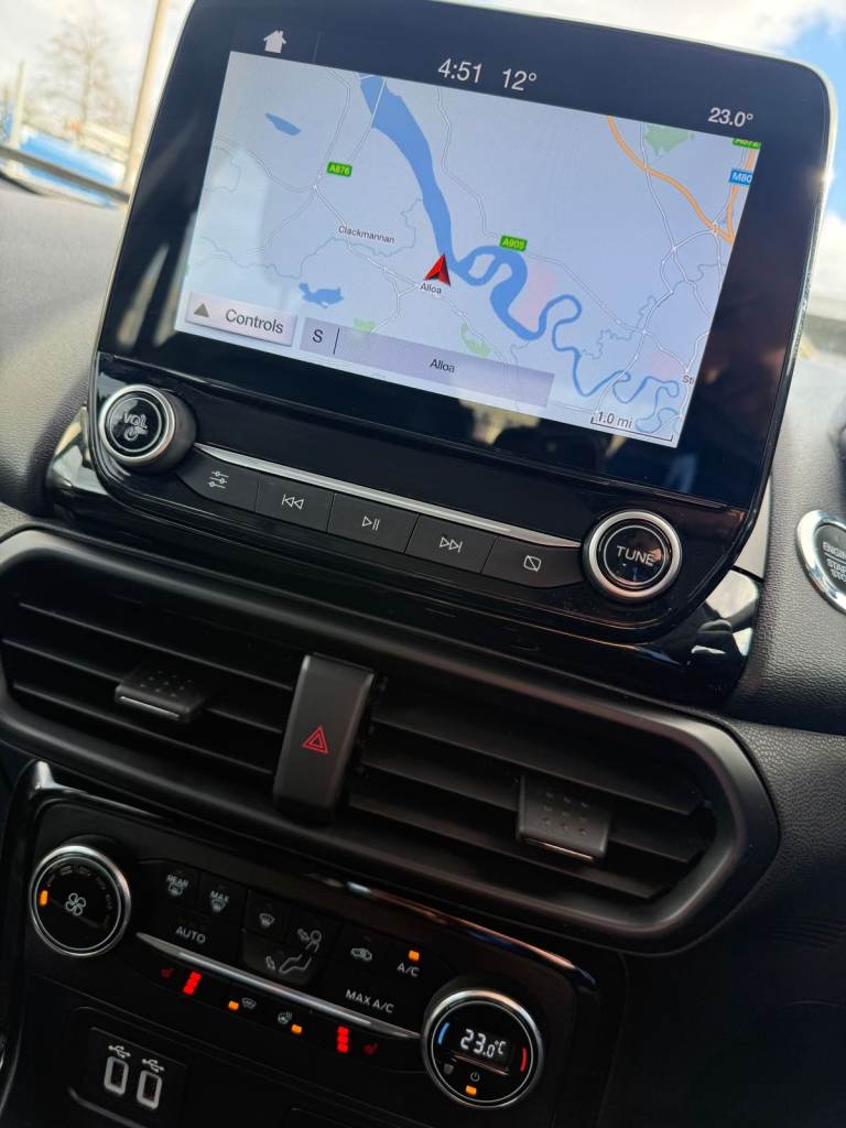 Ford EcoSport Titanium 125bhp 89,000 miles. ULEZ Compliant Only 1 owner from new, 0 previous owners MOT valid until 19 07 2026 Only advisory has been sorted Will be sold with a full years MOT Has 5 previous service stamps Will be freshly serviced before sale Is in brilliant condition inside & out Looks great in metallic blue Drives perfect with no unwanted noises Have done 50 miles Very high spec model Half leather heated seats Heated steering wheel Heated front windscreen Parking sensors Reverse camera Built in Satnav Touchscreen headunit Bluetooth, USB & DAB Radio Heated mirrors Automatic headlights Alloy wheels & air con Push button start Steering wheel controls Cruise control & speed limiter Very unique opening rear boot door 2 keys, v5 & service book present Any test or inspection is welcome Will be sold with 6 months warranty with nationwide breakdown cover, Can be extended to 12 months I have other cars in stock if this isn t for you, please check my website or other listings. One Cars Alloa 14 North Castle Street, Alloa