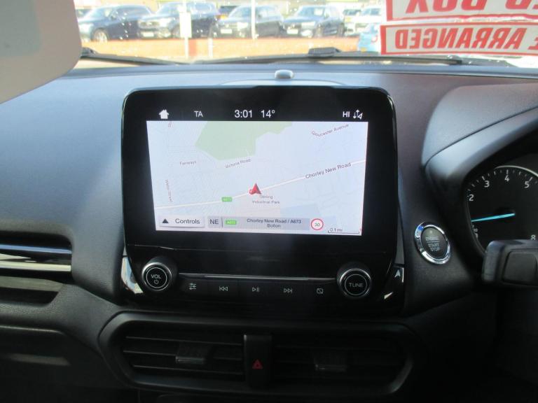 This 2019 Ford EcoSport ST Line T offers exceptionally low mileage for its age, having covered just 42,549 miles. This petrol 1.0L model, finished in the sporty ST Line trim, is a Euro 6 compliant vehicle, indicating its adherence to modern emissions standards. Inside, you'll find the advanced Ford SYNC 3 Navigation system featuring an 8 inch touchscreen, complete with Android Auto, Apple CarPlay, and Bluetooth connectivity for seamless integration of your devices. The Rear View Camera Pack, including parking assistance with a rear camera and rear sensors, makes manoeuvring simple, while automatic headlights and electronic automatic temperature control air conditioning ensure comfort and convenience on every journey.The EcoSport ST Line T stands out with its low CO2 emissions, a key highlight that demonstrates its efficiency compared to other vehicles in its class. This focus on reduced emissions, combined with its impressive fuel economy and the comprehensive technology package, makes it a practical and enjoyable choice for everyday driving. The combination of its sporty styling, advanced infotainment, and driver assistance features provides a well rounded and appealing ownership experience.